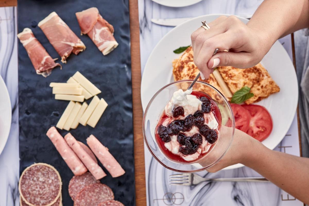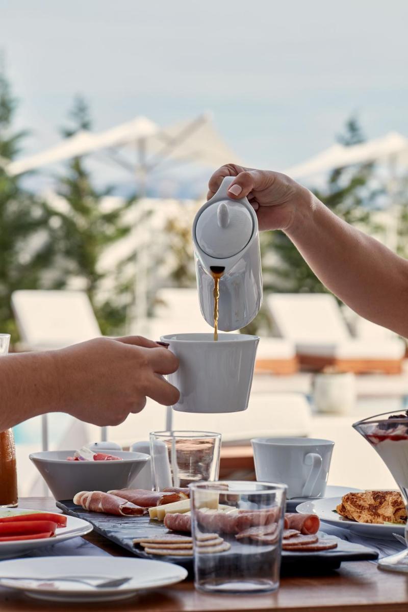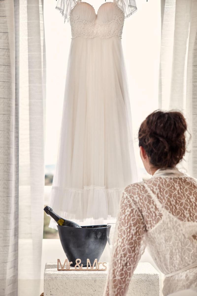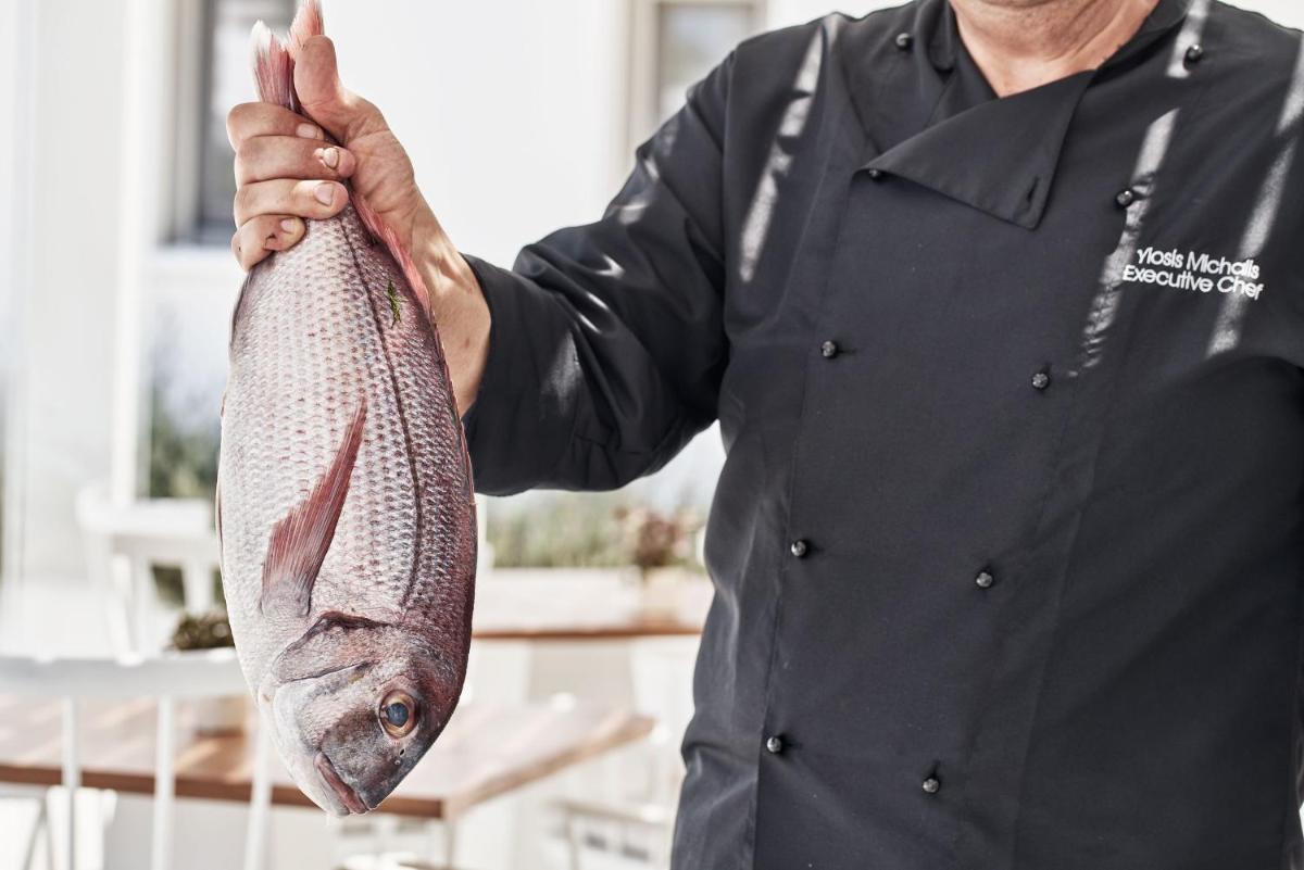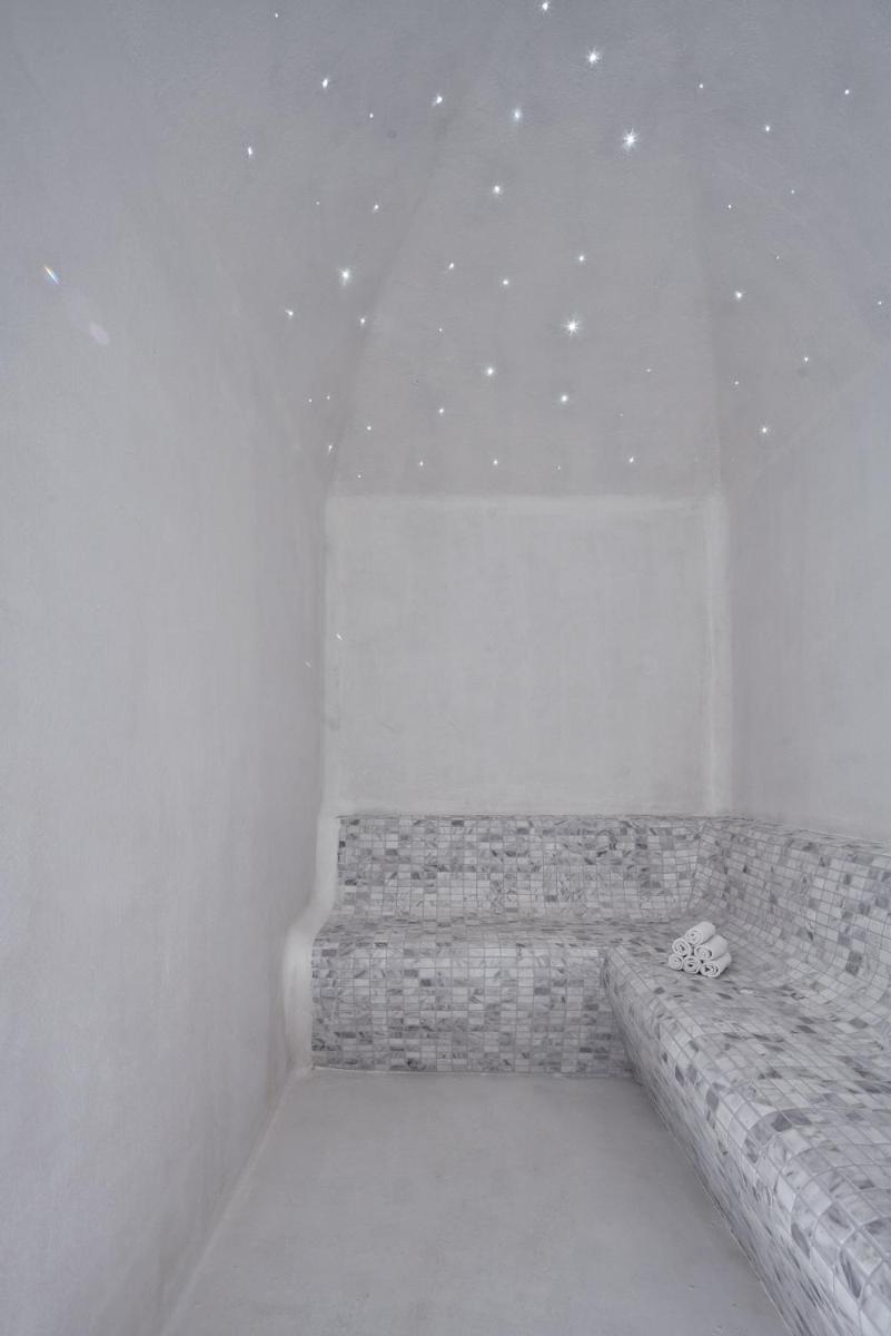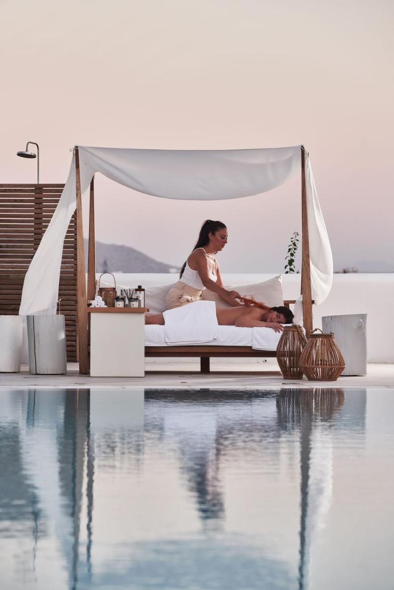 Das Design zeichnet sich durch klare Linien, weiße Wände und Akzente aus Stein und Holz aus, wodurch die Authentizität der Insel bewahrt wird, aber mit einer frischen und luxuriösen Ästhetik. Die Atmosphäre ist hell und luftig, typisch für die Kykladen.