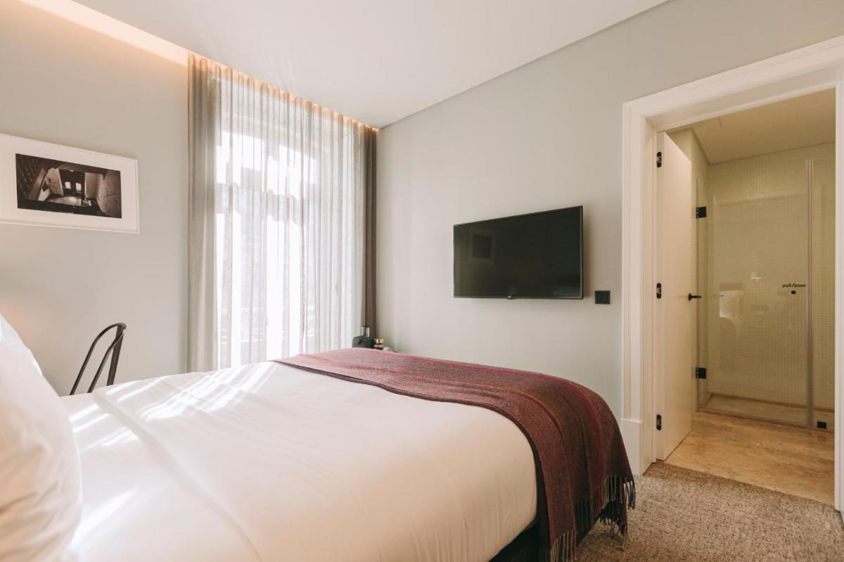 Die Zimmer und das exklusive 'Sótão Único' (einzigartiges Dachgeschoss) bieten einen ruhigen Rückzugsort im geschäftigen Stadtzentrum, mit zeitgenössischem Design und sehr bequemen Betten. Sie sind geräumig, mit ausgezeichneter Schalldämmung, und laden die Gäste ein, den Luxus der Stille und der Erholung in einer Umgebung von Boutique-Luxus zu genießen.
