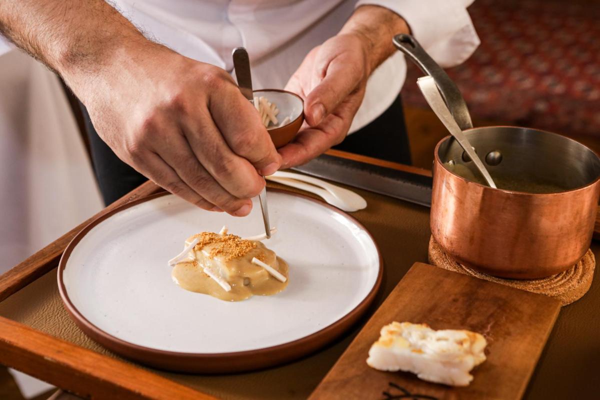 Das Resort ist ein kulinarisches Ziel. Das Hauptrestaurant, Refectorio, ist mit einem Michelin-Stern ausgezeichnet und befindet sich im ehemaligen Refektorium der Mönche, mit einem originalen Fresko aus dem 17. Jahrhundert. Das informellere Restaurant, Vinoteca, bietet ausgezeichnete lokale Küche mit einer breiten Auswahl der Weine des international bekannten Weinguts.