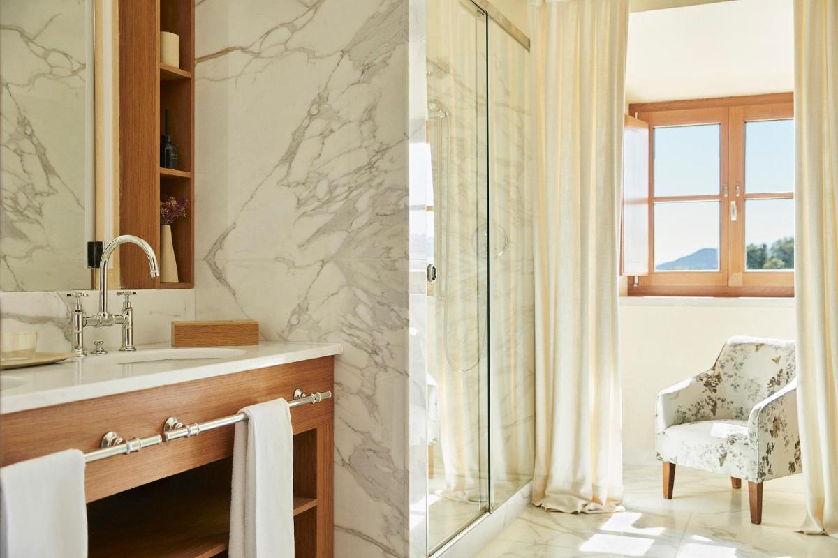 Die Abtei bewahrt ihre ursprüngliche Struktur, mit Kreuzgang und Kirche, verschmolzen mit einem zeitgenössischen und schlichten Innendesign, das die klösterliche Ruhe betont. Alle 30 Zimmer und Suiten bieten personalisierten Luxus, einschließlich der exklusiven Betreuung durch einen privaten Butler rund um die Uhr, ein Unterscheidungsmerkmal des Anwesens.