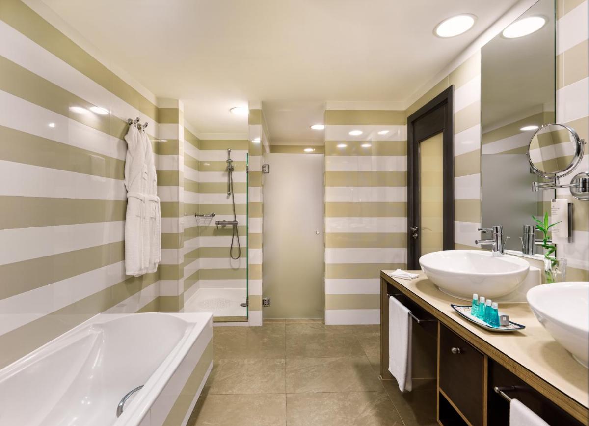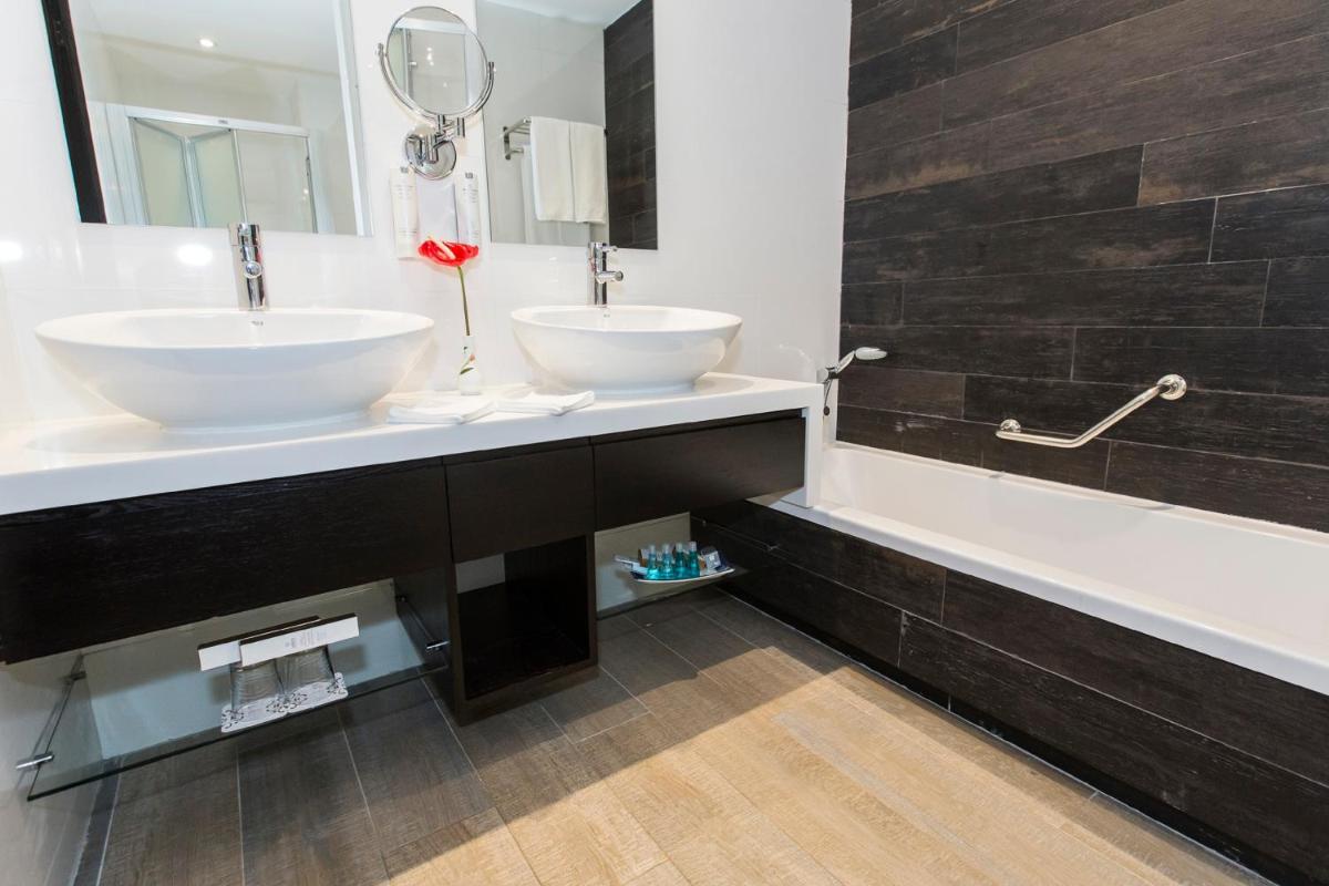Der Mittelpunkt des Hotels ist der riesige subtropische Garten von über 10.000 m², der zwei Pools beherbergt: einen großen Süßwasserpool und einen spektakulären beheizten Salzwasserpool mit einer Glaskuppel in der Mitte, die ihn einzigartig macht. Dieser Bereich ist für totale Entspannung konzipiert, mit viel Platz zum Sonnenbaden und Genießen der üppigen und exotischen Vegetation.