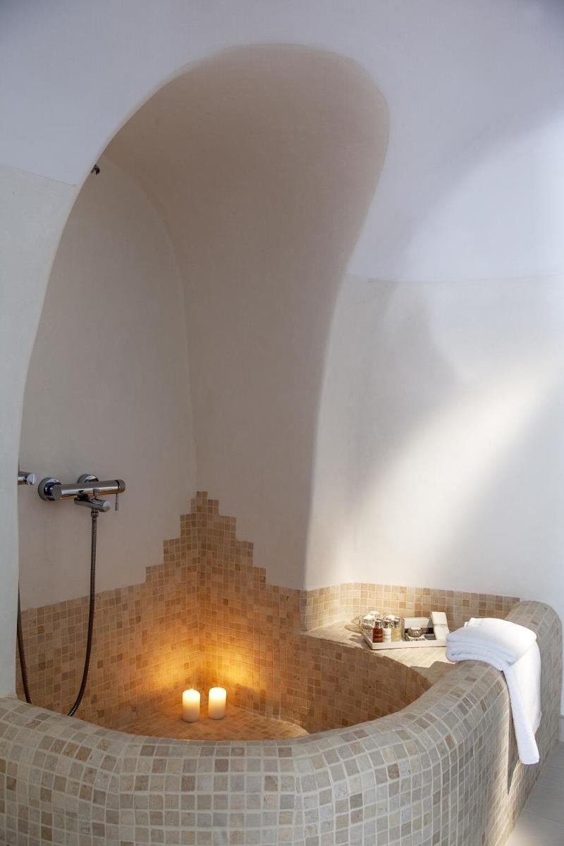Jede Suite wurde als privates Heiligtum konzipiert, mit minimalistischer, aber anspruchsvoller Einrichtung und feinen Details. Viele Unterkünfte verfügen über einen beheizten Außen- oder Innen-Jacuzzi, perfekt positioniert, um den Blick auf den Vulkan und die Ägäis zu maximieren, und bieten den idealen Rahmen, um den Sonnenuntergang in völliger Intimität zu bewundern.