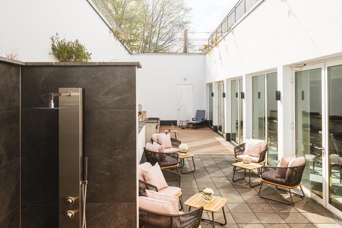 Das '4 elements' Wellnesszentrum ist ein Rückzugsort der Ruhe, der sich über 1.000 qm erstreckt und ein Entspannungserlebnis bietet, das von den vier Elementen inspiriert ist: Erde, Feuer, Wasser und Luft. Das Spa verfügt über einen Innenpool, eine Sauna, ein Türkisches Bad und eine breite Palette an Schönheits- und Wellnessbehandlungen. Es ist der perfekte Ort, um Körper und Geist zu entspannen innerhalb der historischen Umgebung des Schlosses.