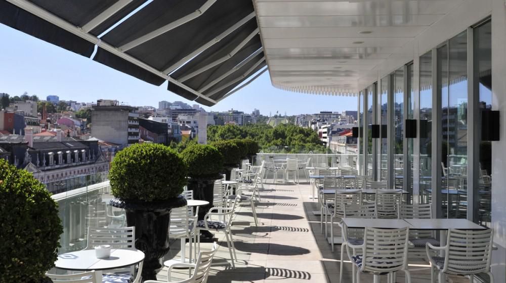Das Highlight ist sein Panorama-Restaurant und die Bar auf dem Dach, die einen spektakulären Blick auf das Castelo de São Jorge, den Platz und die umliegende Stadt bieten. Hier können Gäste zeitgenössische Küche mit portugiesischen Wurzeln in einer lebhaften und eleganten Umgebung genießen, ideal, um den Sonnenuntergang über Lissabon zu bewundern.