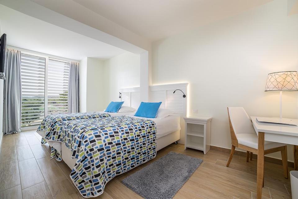 Das Innendesign ist frisch, zeitgenössisch und minimalistisch, mit einer geschickten Verwendung lebendiger Farben und Materialien, die die Küstenumgebung widerspiegeln. Die Zimmer sind gemütlich und funktional, konzipiert, um maximalen Komfort zu bieten. Die Gesamtatmosphäre ist dynamisch und modisch und hebt sich innerhalb des Resorts durch ihren Fokus auf ein Publikum ab, das ein moderneres und soziales Erlebnis sucht.