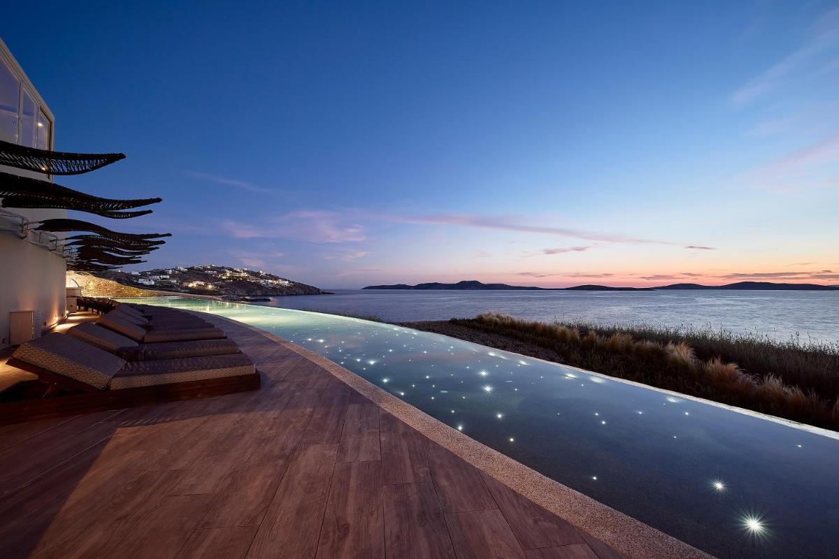 Das Design des Resorts zeichnet sich durch klare Linien, natürliche Farbtöne und eine Architektur aus, die den kykladischen Stil respektiert, jedoch mit einem modernen Touch versehen ist. Die geräumigen und luxuriösen Zimmer und Villen verfügen oft über private Infinity-Pools oder Jacuzzis, die optisch mit dem Meerhorizont verschmelzen. Die Liebe zum Detail gewährleistet ein Aufenthaltserlebnis von maximalem Komfort und Privatsphäre.