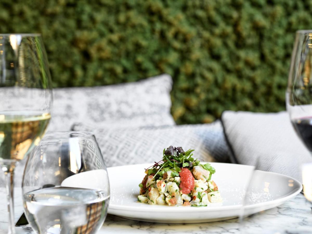 Das Hotelrestaurant ist bekannt für seine kreative Küche. Die Anlage umfasst einen charmanten Innenhof mit Garten, der eine Oase der Ruhe und eine einzigartige Umgebung für elegantes Speisen bietet, oft mit Blick auf die archäologischen Funde.
