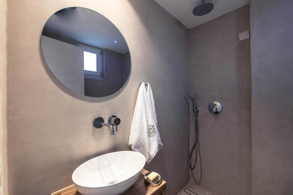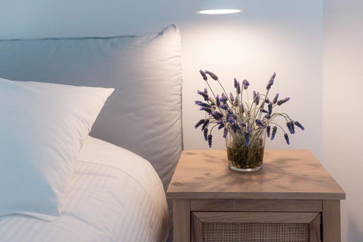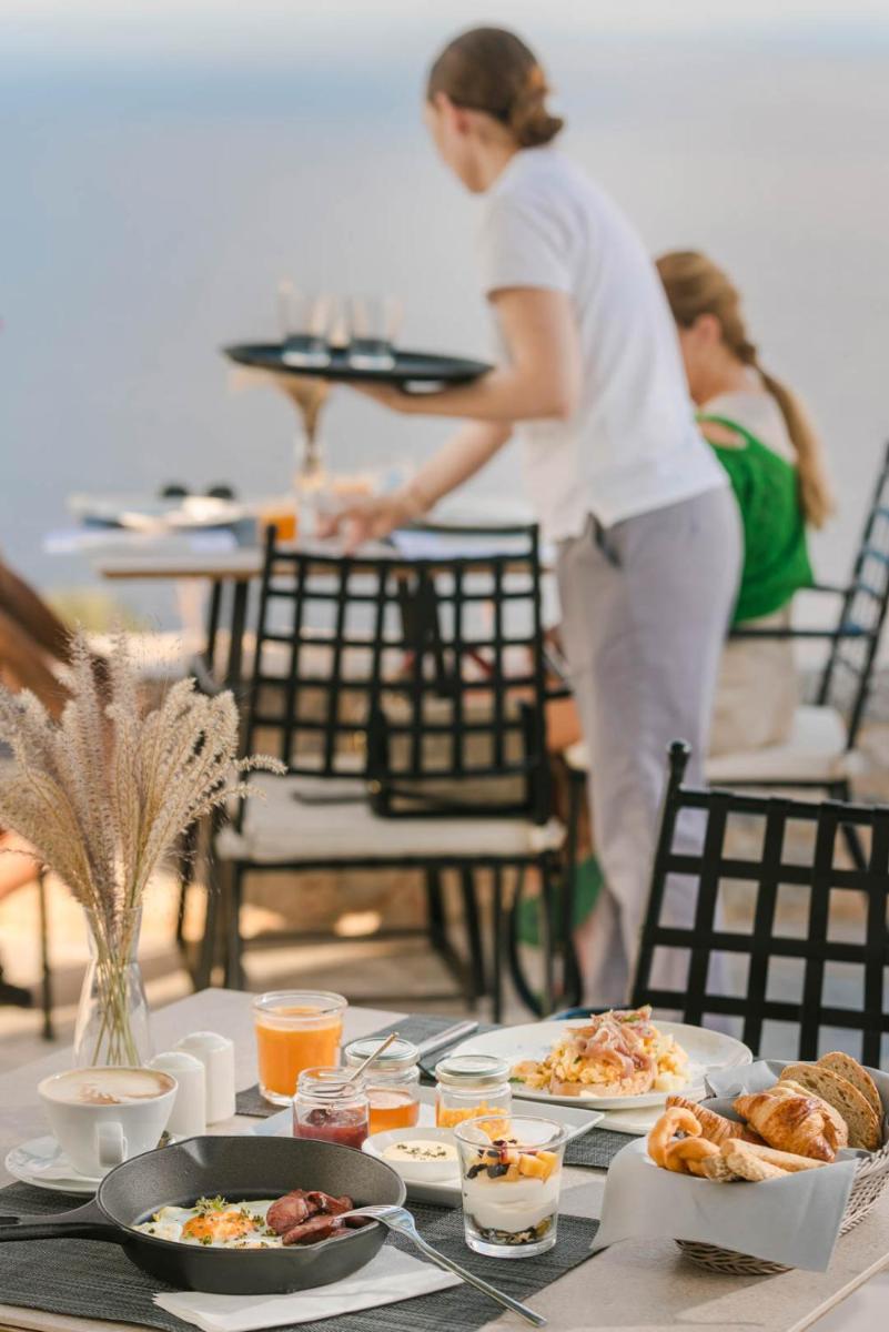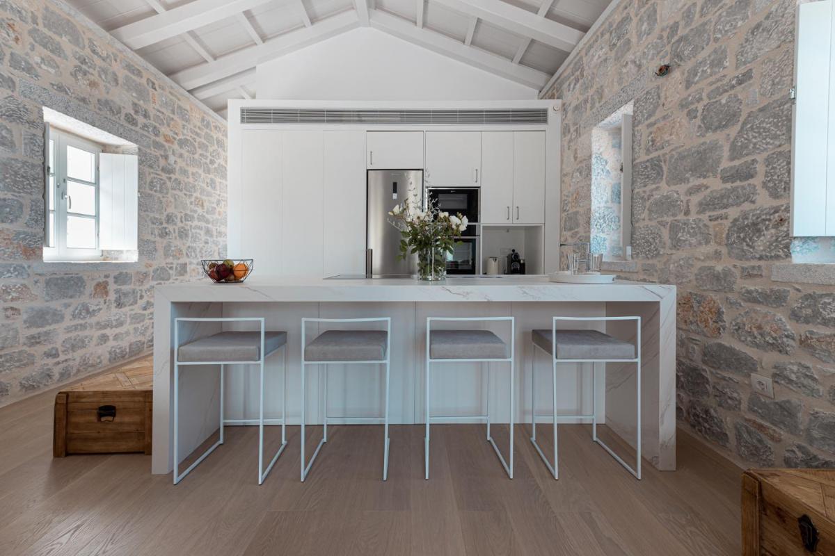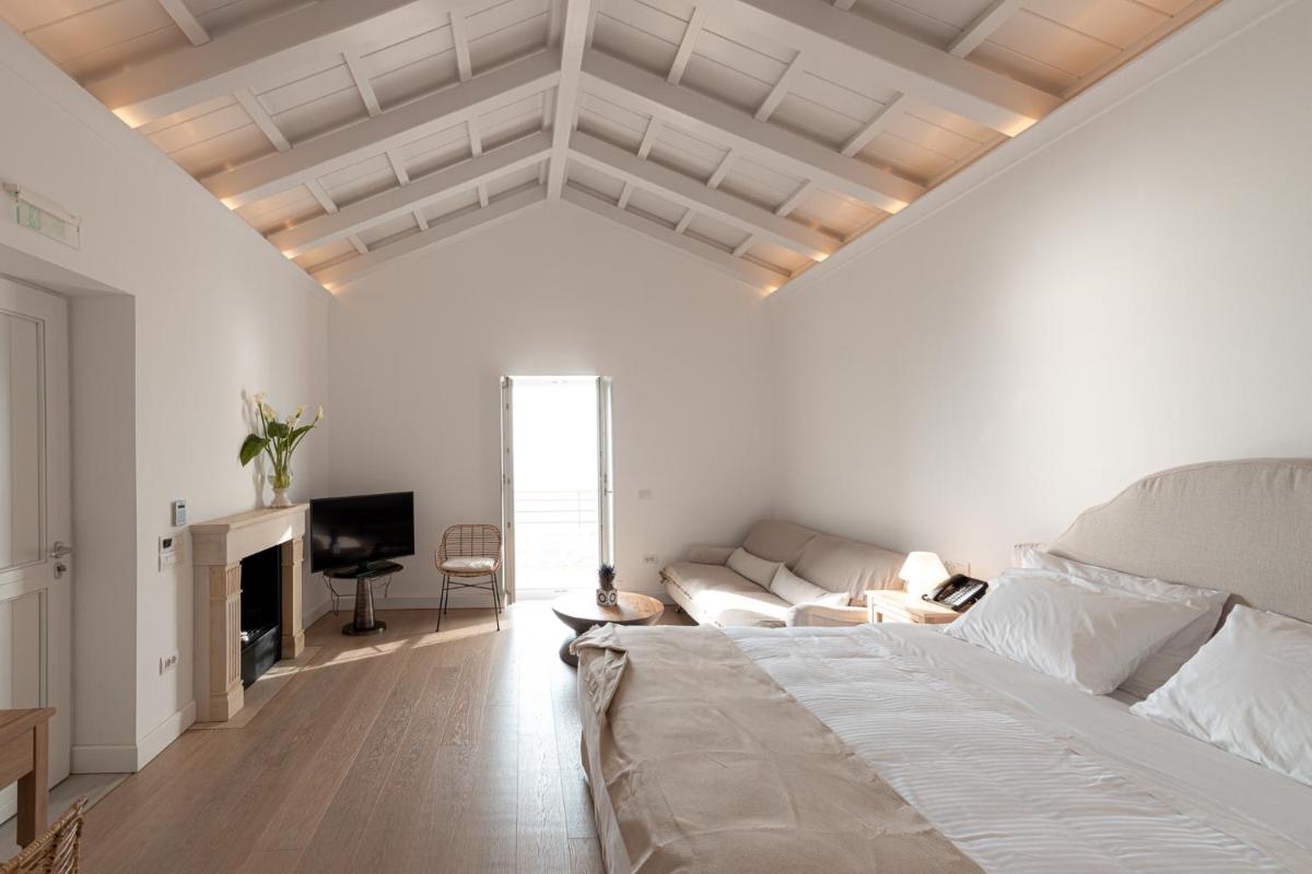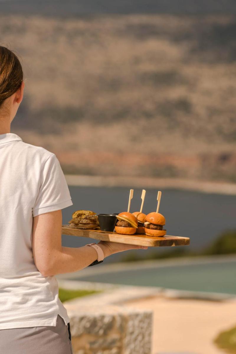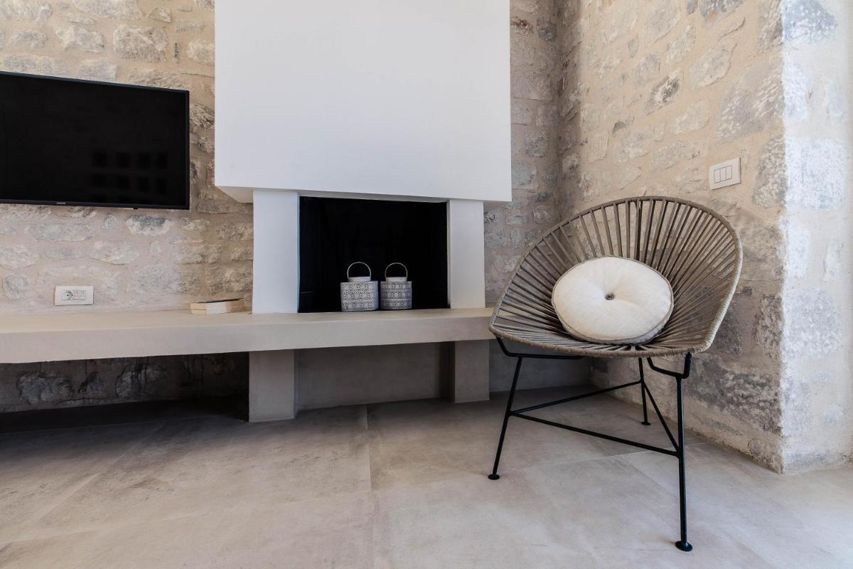 Die Struktur ist vollständig aus lokalem Stein gebaut und respektiert den Stil der Verteidigungstürme von Mani. Die Suiten sind geräumig, mit maßgefertigten Möbeln und luxuriösen Stoffen, und viele verfügen über private Terrassen mit Meerblick.