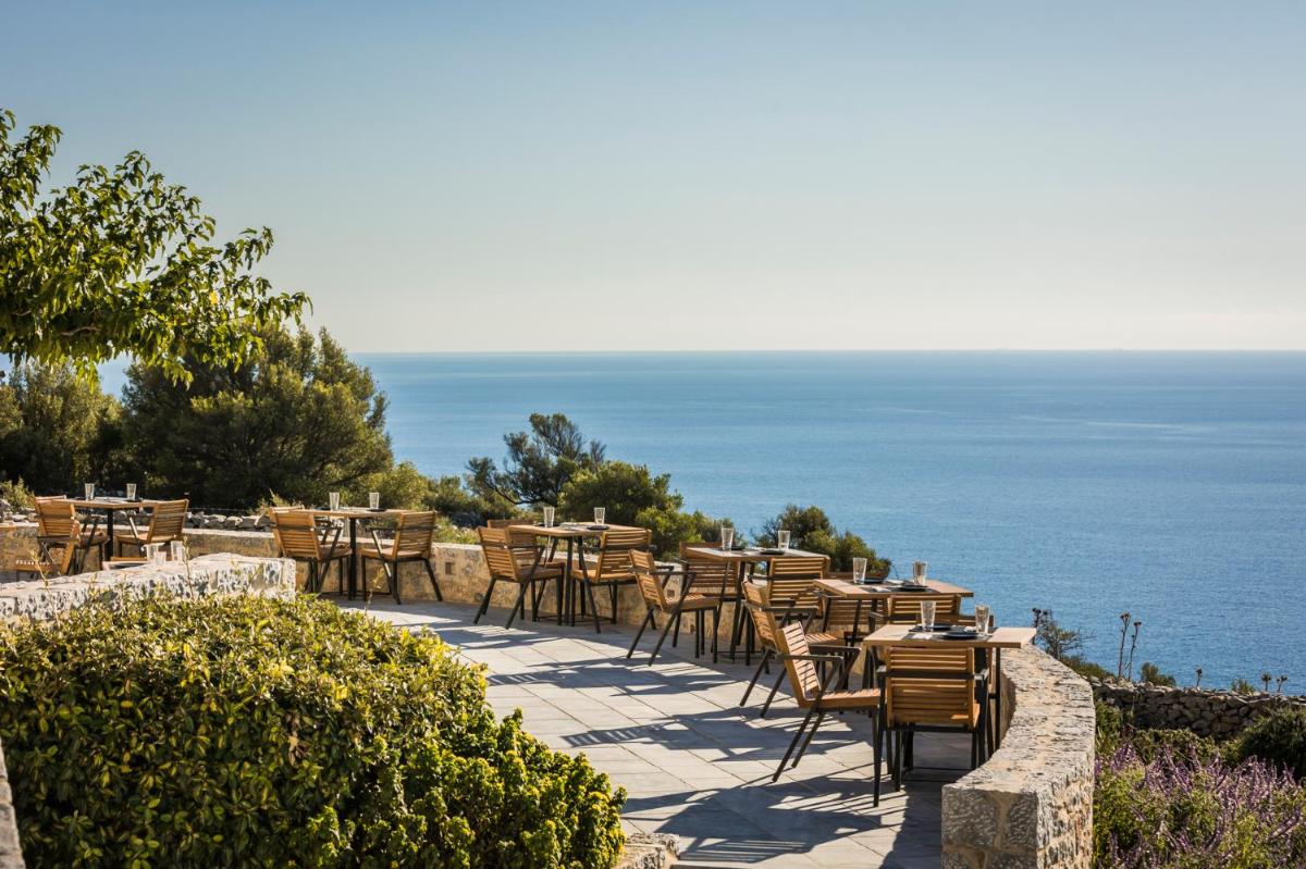 Das Resort verfügt über einen spektakulären Infinity-Pool, der mit dem Messinischen Golf zu verschmelzen scheint. Der Spa & Wellness-Bereich ist ein weiterer Höhepunkt und bietet verjüngende Behandlungen in einer Umgebung der totalen Entspannung.