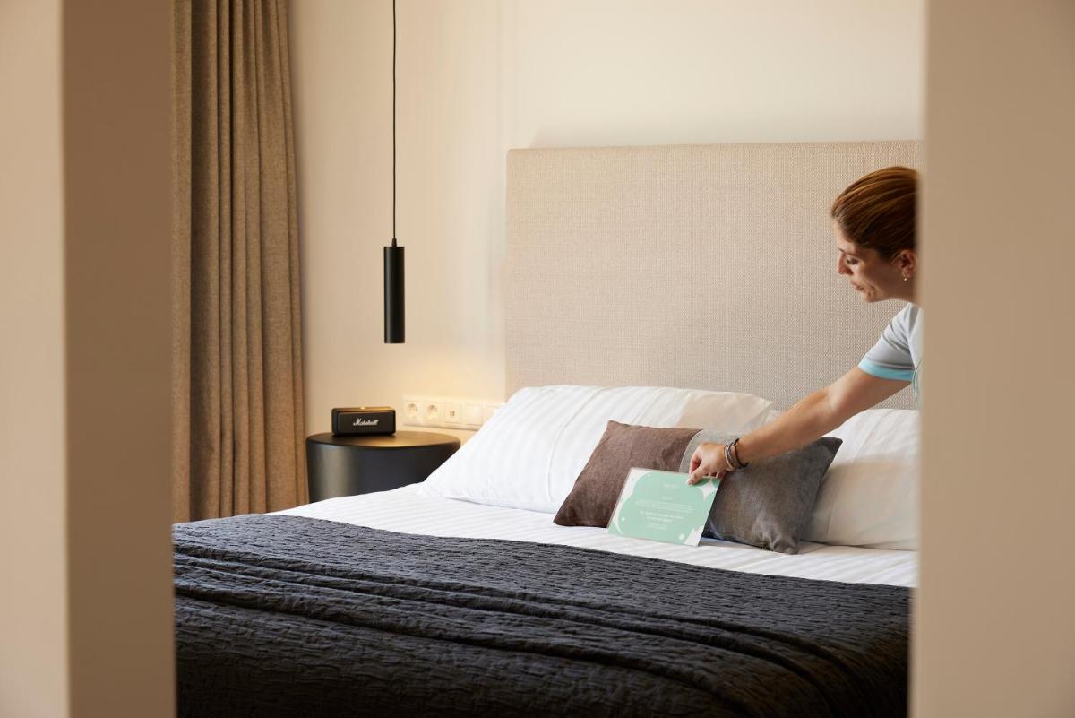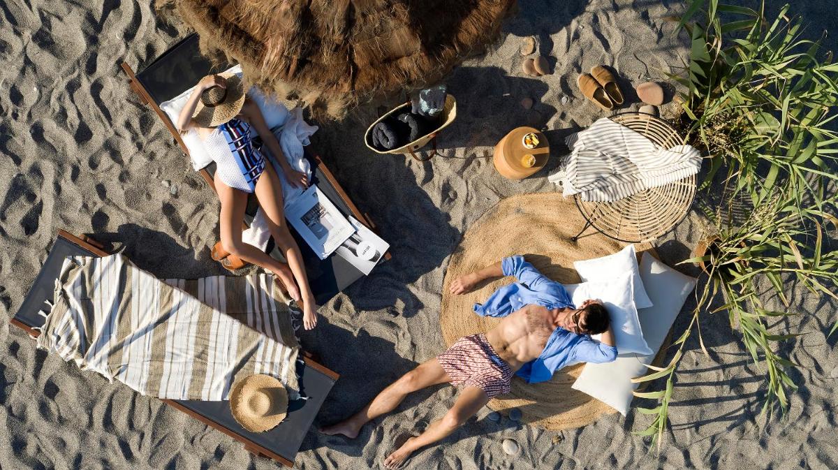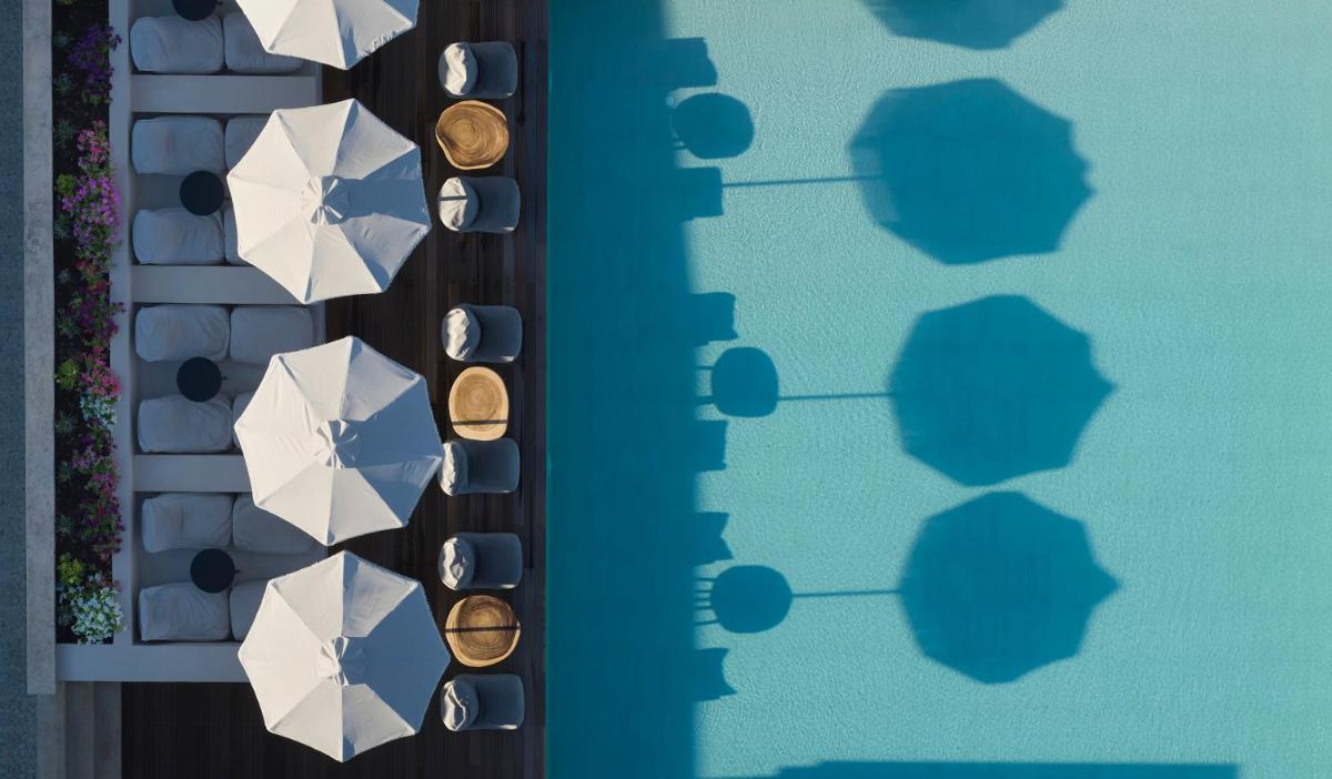 Das Resort bietet Suiten und Zimmer mit anspruchsvollem Design, einer Dominanz von Naturtönen und hochwertigen Oberflächen. Die Nähe zum Meer ist ein zentrales Element, mit direktem Strandzugang und vielen Einheiten mit Aussicht und privatem Pool/Whirlpool.