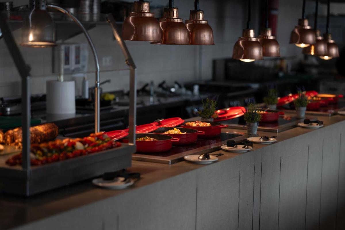 Die Restaurants bieten authentische kretische Küche und innovative mediterrane Gerichte, oft mit der Option, im Freien mit Meerblick zu speisen, was eine romantische und unvergessliche Kulisse schafft.