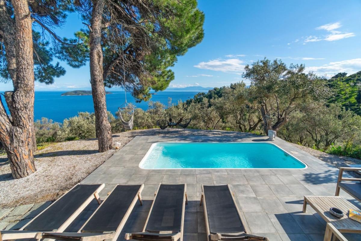 Der Hauptanziehungspunkt der Villa ist ihr privater Außenbereich, der einen wunderschönen Außenpool und eine geräumige möblierte Sonnenterrasse mit Blick auf den Garten und teilweise das Meer umfasst. Dieser Bereich ist so konzipiert, dass er einen ruhigen Rückzugsort bietet, an dem Gäste ungestört entspannen und die griechische Sommeratmosphäre genießen können.