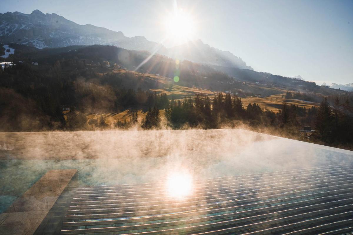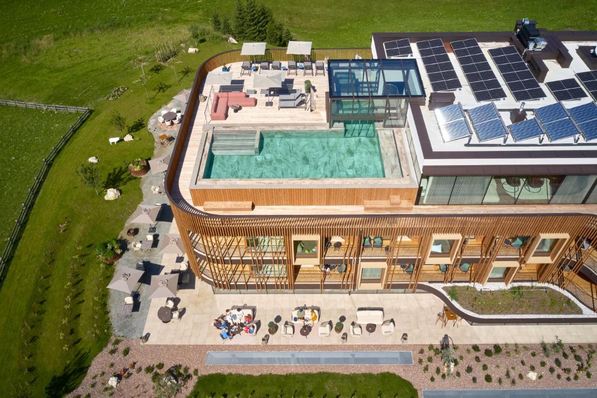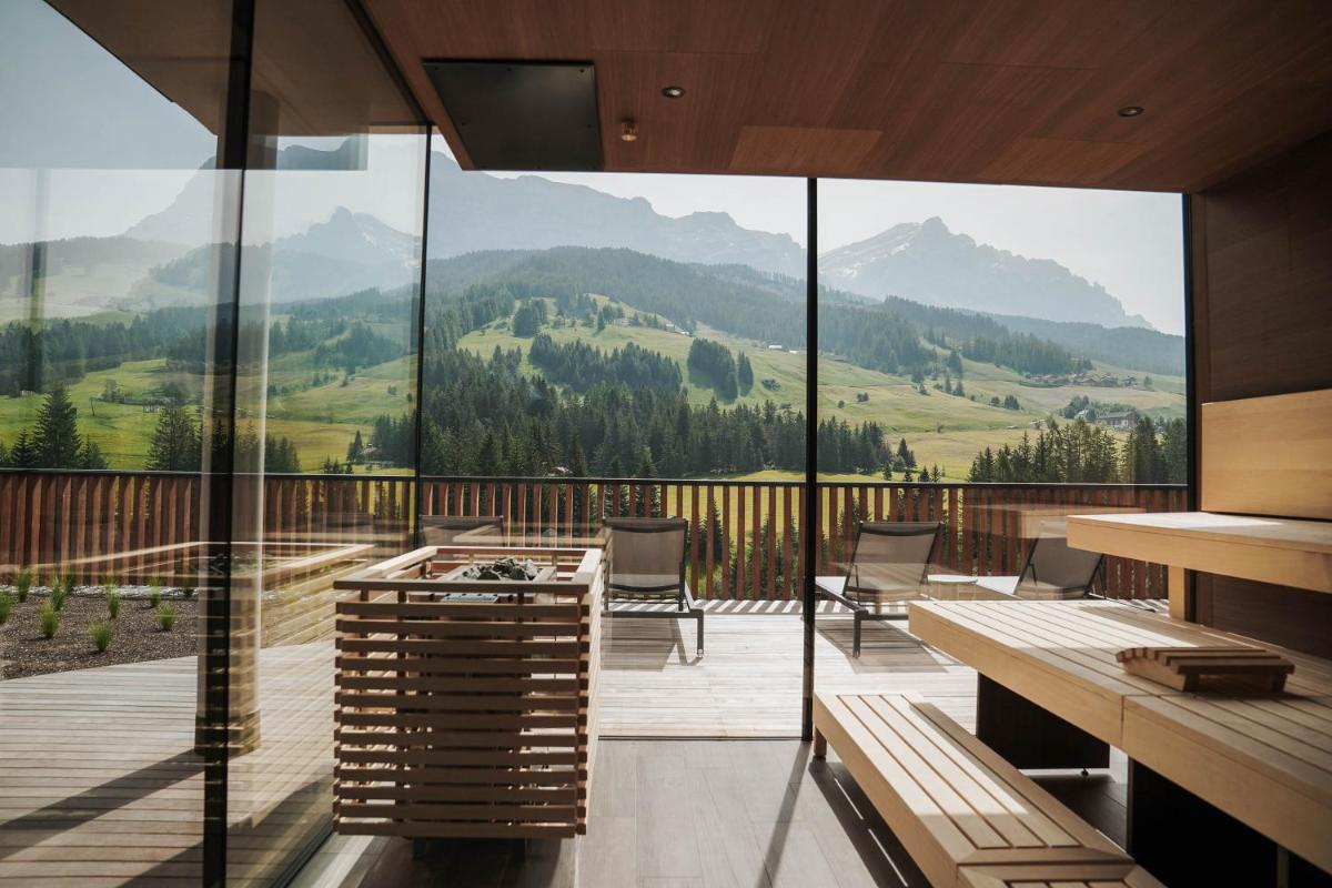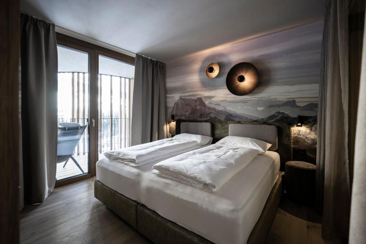 Die 33 Zimmer und Suiten verfügen über Panoramabalkone natürliche Materialien und einige bieten Sauna oder Whirlpool mit Bergblick
