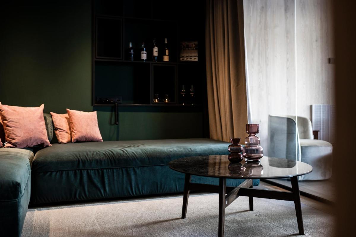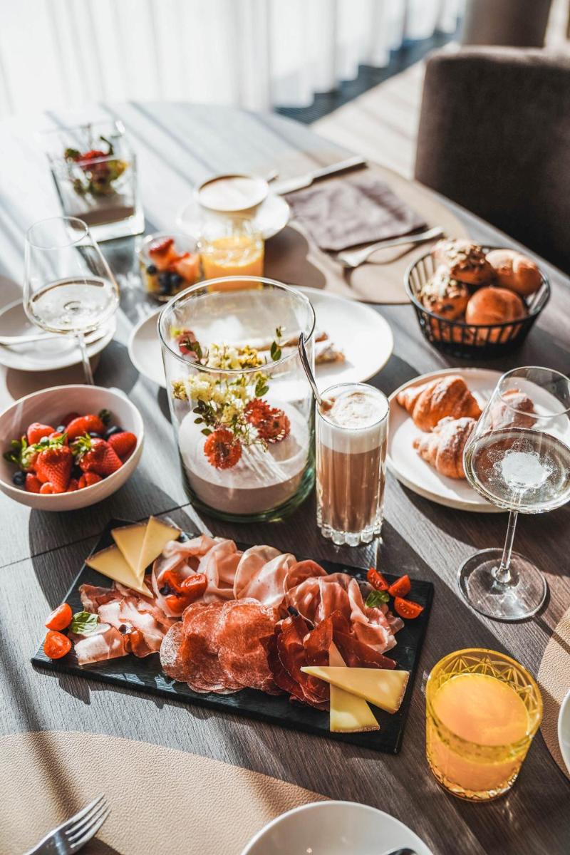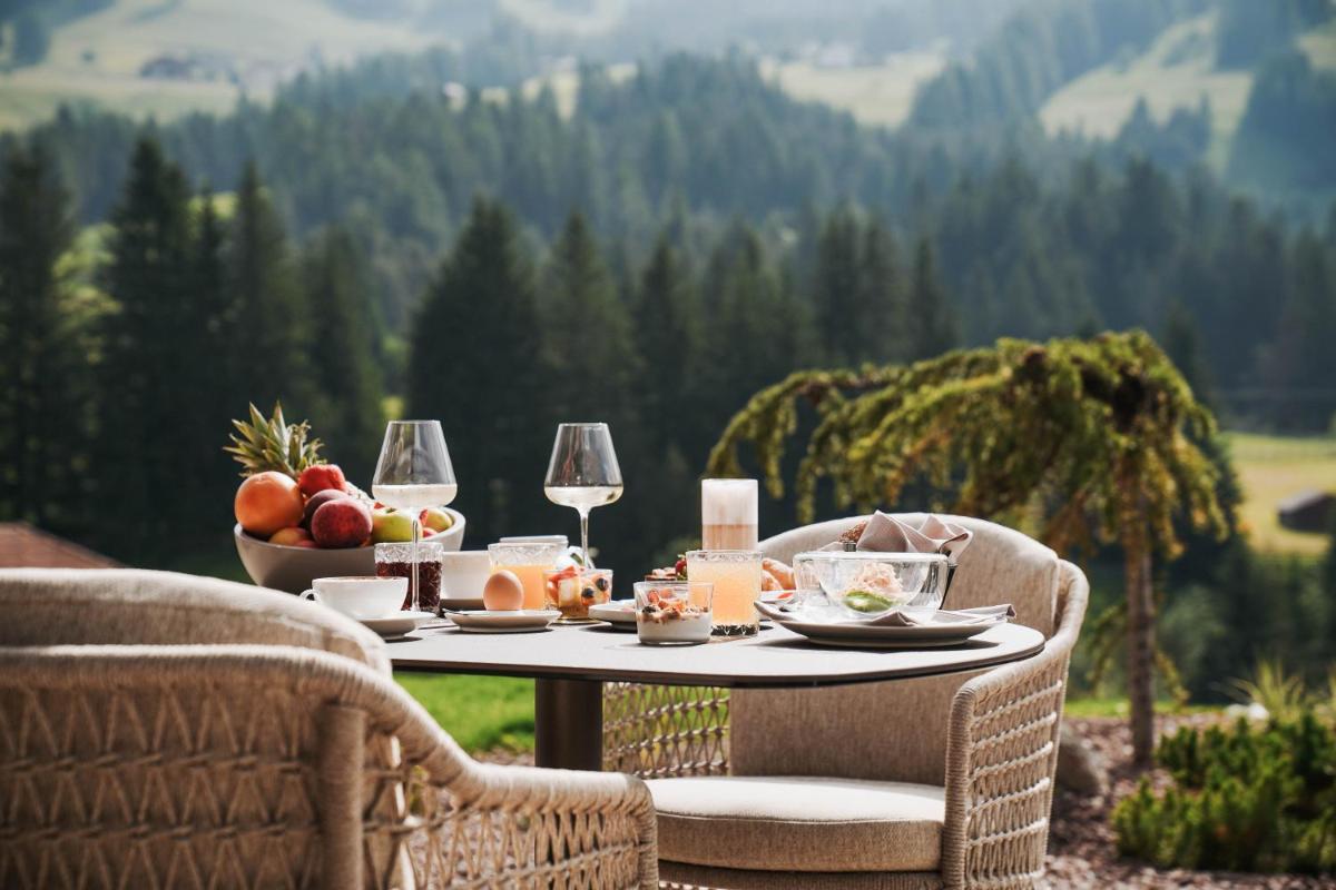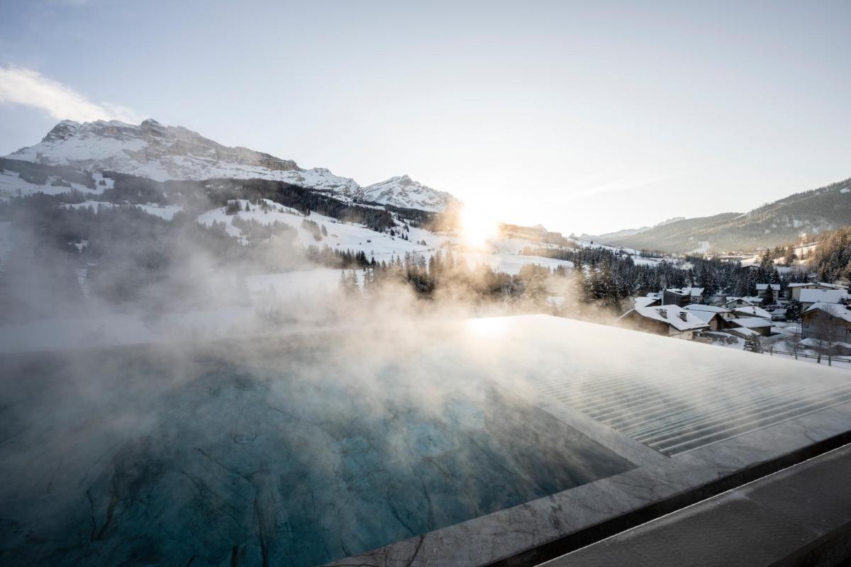 Die 33 Zimmer und Suiten verfügen über Panoramabalkone natürliche Materialien und einige bieten Sauna oder Whirlpool mit Bergblick