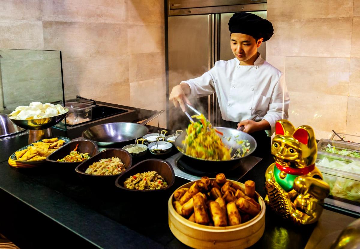Das kulinarische Angebot ist eine Stärke, wobei das Buffet-Restaurant 'Atlantico' eine breite Auswahl an Gerichten der internationalen und lokalen Küche bietet, die mit frischen Zutaten zubereitet werden. Darüber hinaus bieten mehrere Themenbars, darunter eine elegante Poolbar, Signature-Cocktails und Gourmet-Snacks in einem zeitgenössischen und lebhaften Ambiente.