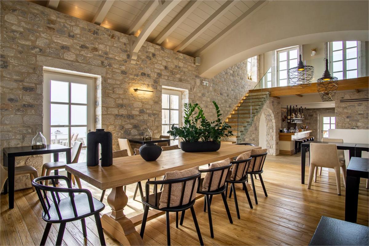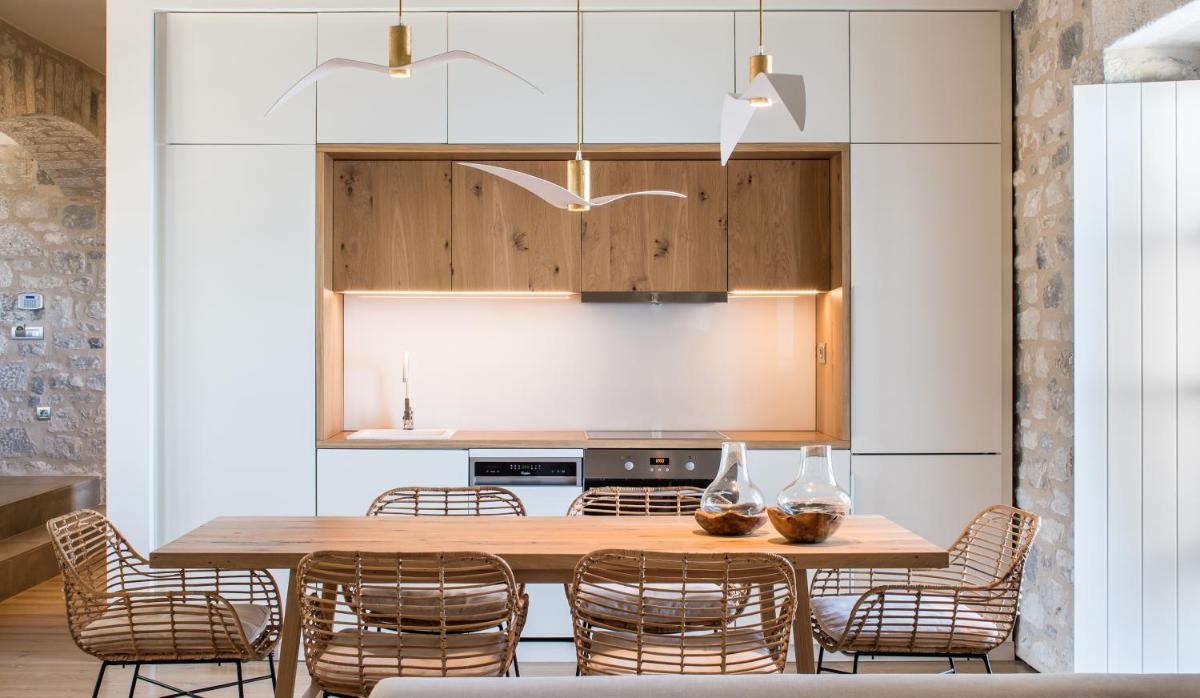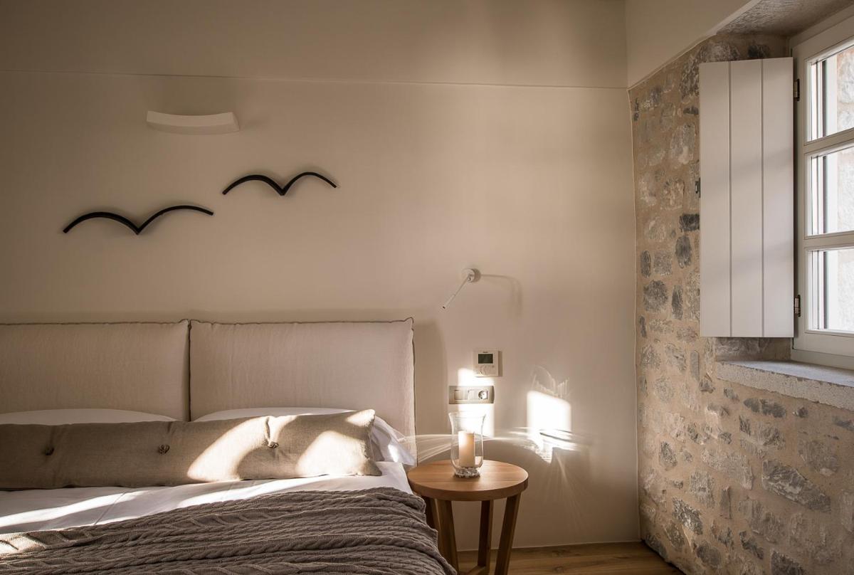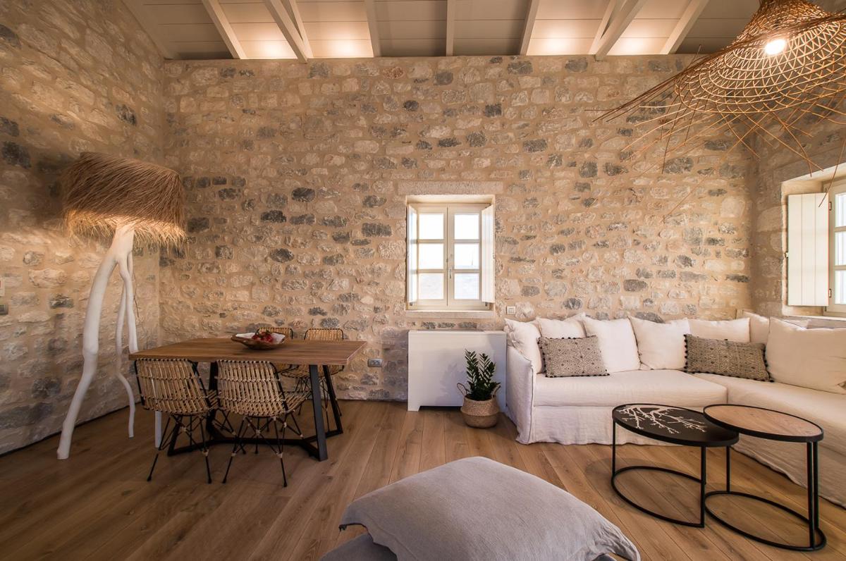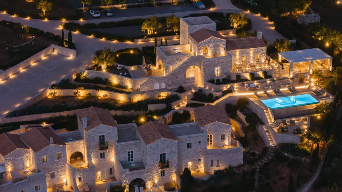 Die Unterkünfte, die von Suiten bis zu privaten Villen reichen, sind so konzipiert, dass sie maximale Privatsphäre und eine einzigartige Atmosphäre bieten. Die Innenräume weisen Holz- und Steinelemente auf, kombiniert mit hochwertigem zeitgenössischem Komfort. Viele Einheiten bieten herrliche Ausblicke auf die Ägäis, perfekt, um das Panorama von privaten Balkonen oder Terrassen aus zu genießen.
