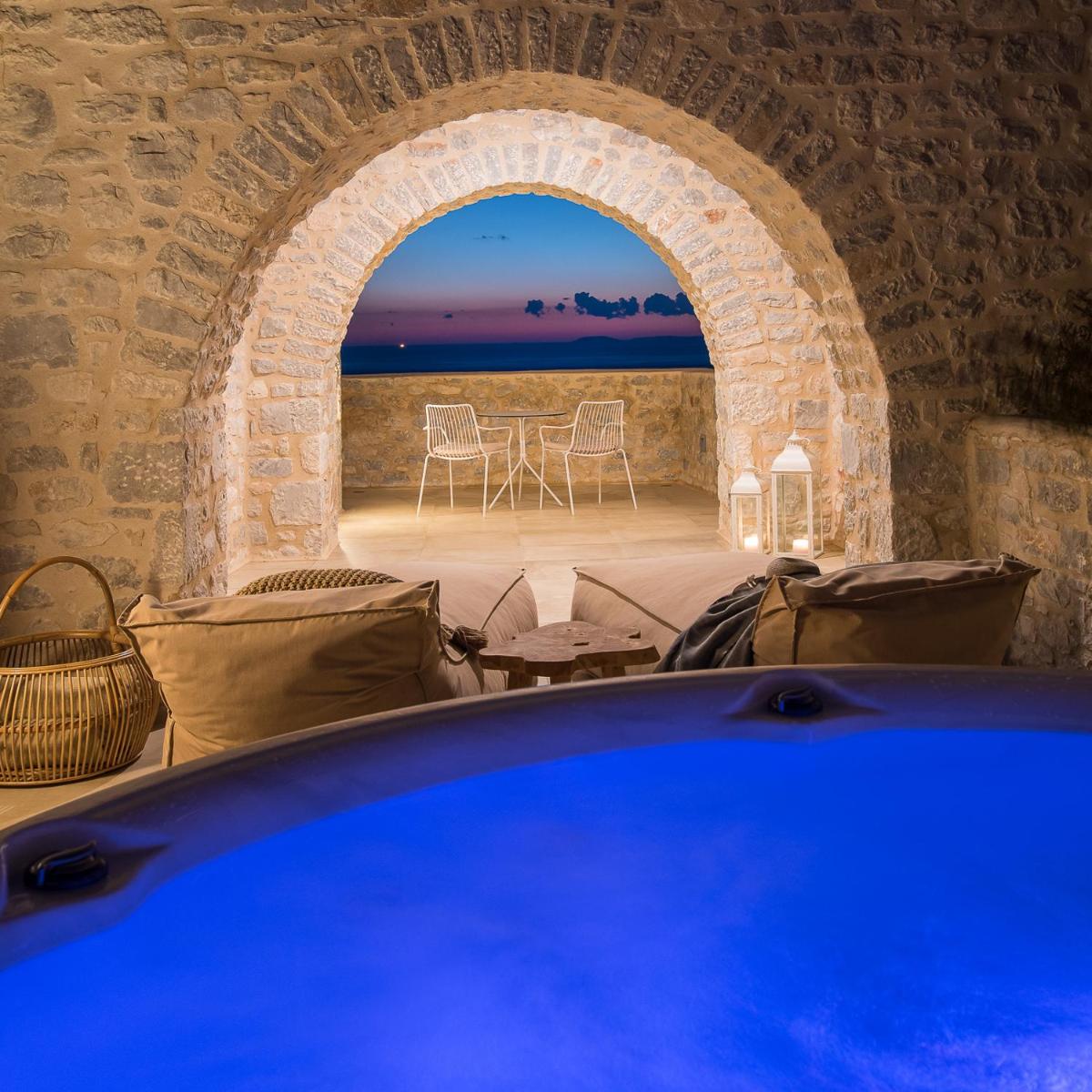 Der Komplex verfügt über einen herrlichen saisonalen Außenpool mit Blick auf die Küste, der einen außergewöhnlichen Aussichtspunkt bietet, um die raue und eindrucksvolle Landschaft von Mani zu bewundern. Der Solariumbereich ist ein Ort der absoluten Ruhe, ideal zum Abkühlen und Entspannen nach der Erkundung der felsigen Umgebung.