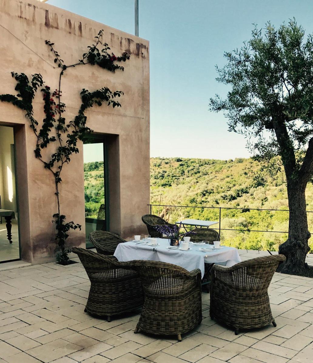 Battimandorlo ist eine charmante Landresidenz, umgeben von Mandelhainen und Hügeln, nur wenige Kilometer von Noto entfernt. Zwischen jahrhundertealten Olivenbäumen, mediterraner Vegetation und wohltuender Ruhe vereint sie zeitgenössische Architektur, natürliche Materialien und sizilianische Authentizität.
