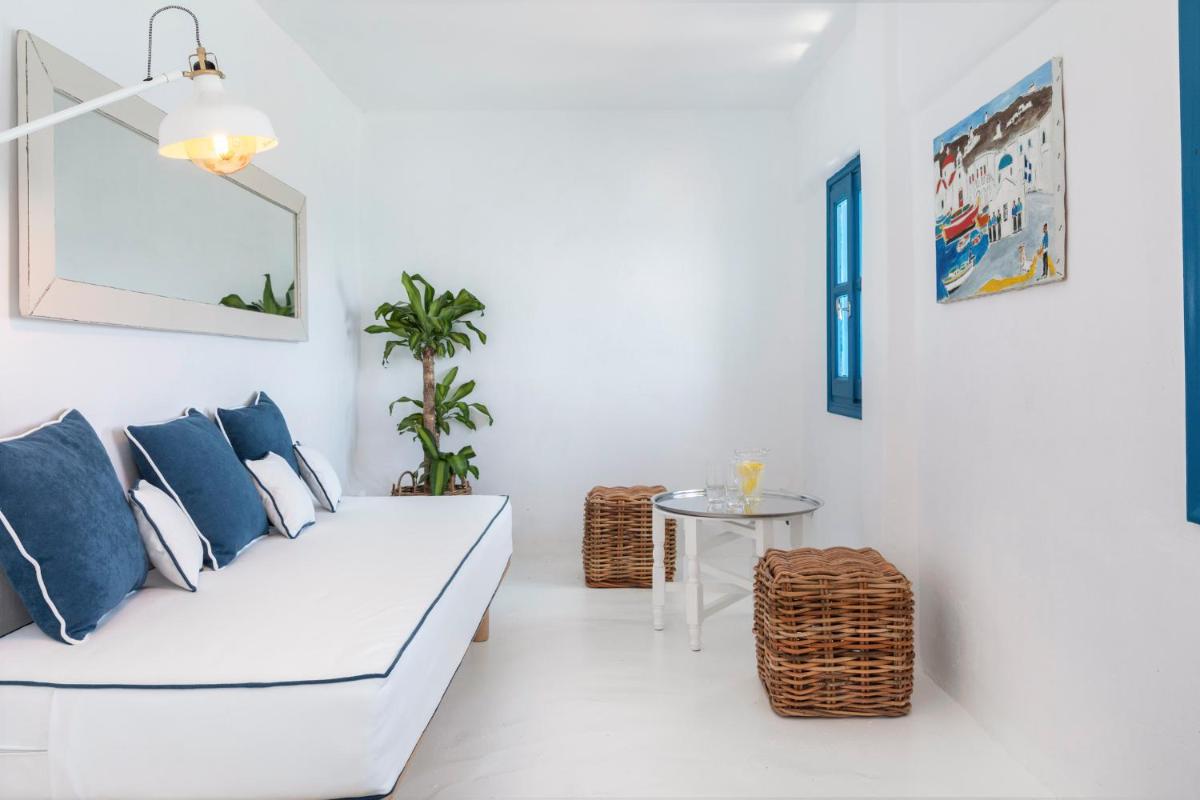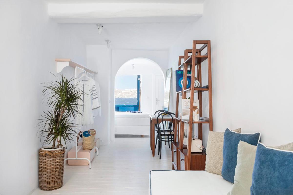 Die Stärke dieser Residenzen ist ihre unvergleichliche Lage. Gäste genießen eine privilegierte Perspektive auf Klein-Venedig, das Meer und die berühmten Windmühlen von Mykonos. Diese Panoramen sind besonders magisch bei Sonnenuntergang, wenn der Himmel in Rosa und Orange getaucht wird, was jeden Moment auf dem Balkon zu einem unvergesslichen Foto- und Entspannungserlebnis macht.