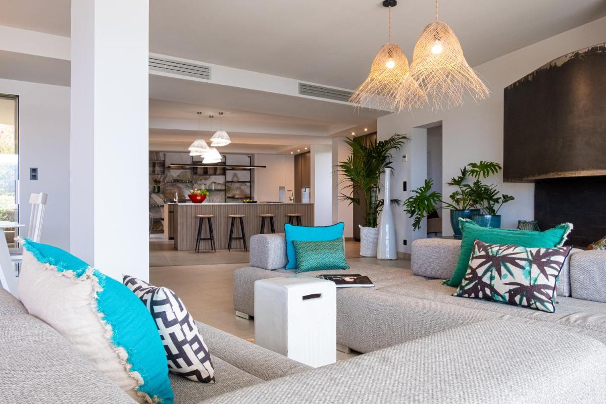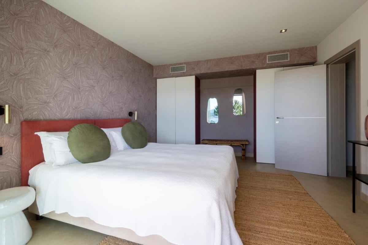 Die 7 Zimmer der Casa Lou sind darauf ausgelegt, maximalen Komfort zu bieten, ausgestattet mit Klimaanlage und modernen Annehmlichkeiten. Jedes sorgfältig eingerichtete Zimmer ist eine Oase der Ruhe. Die Gäste genießen Annehmlichkeiten wie ein komplettes eigenes Bad, Safe und Fernseher, oft mit einer privaten Terrasse für ruhige Momente.