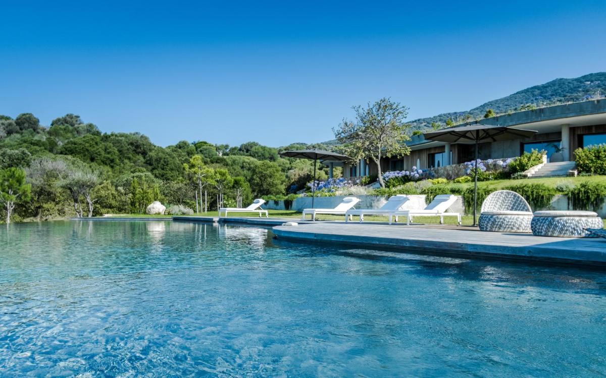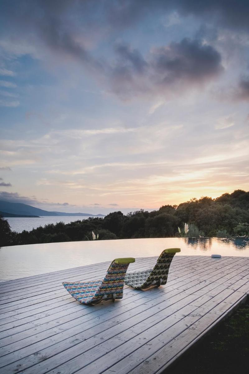Das Herzstück des Anwesens ist der Außenbereich, der sich durch einen gepflegten Garten und einen angenehmen Außenpool auszeichnet. Dieser Bereich ist perfekt zum Abkühlen und Sonnenbaden in einer heiteren und diskreten Umgebung. Der Garten und die Terrasse bieten Raum zum Entspannen, Lesen und Genießen der typischen Ruhe der korsischen Landschaft.