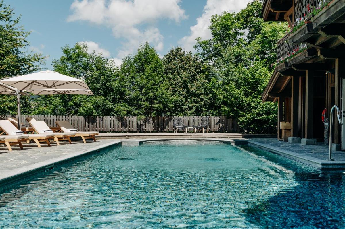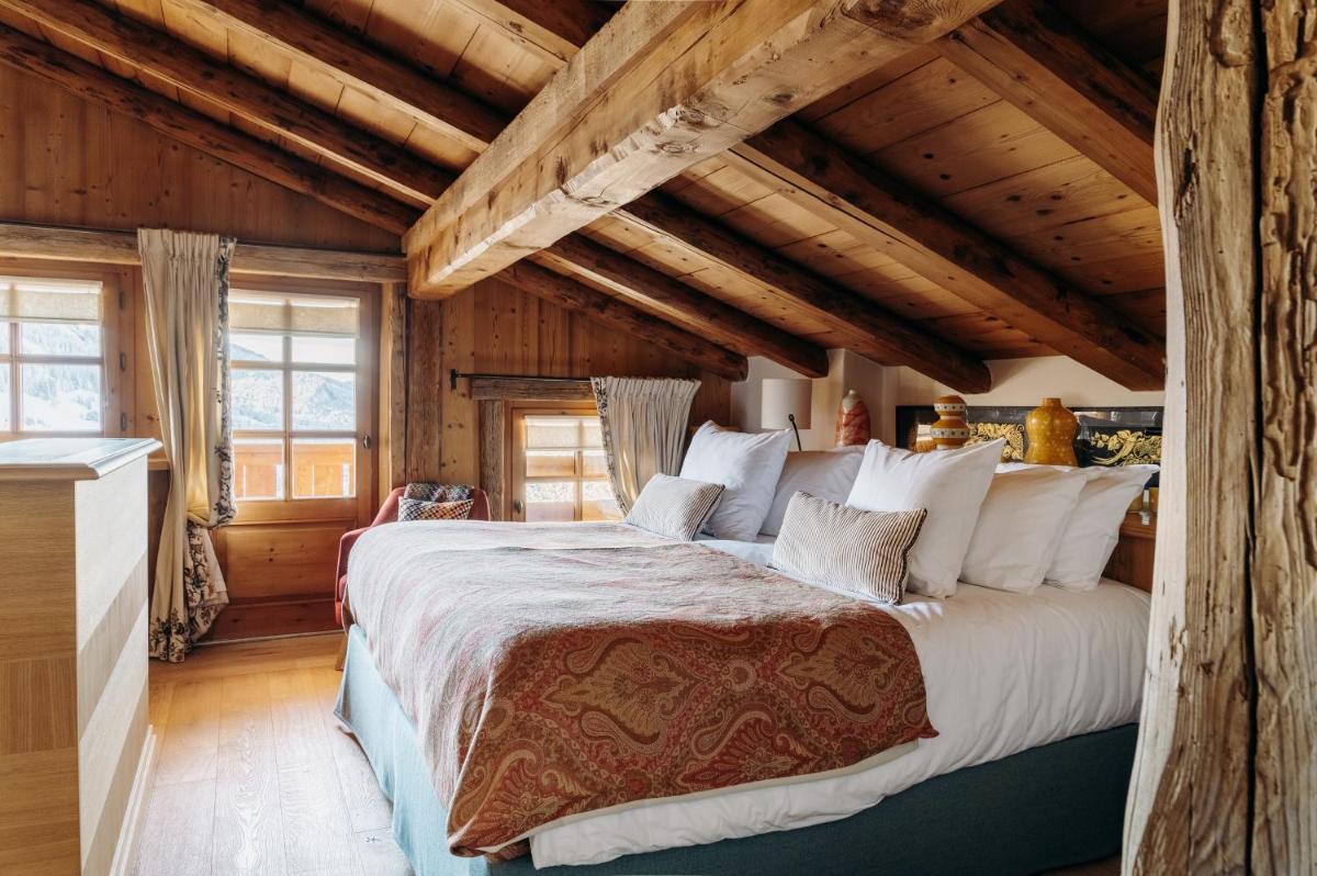 Die Innenräume sind ein Meisterwerk des Bergdesigns, mit viel Altholz, warmen Fellen und edlen Stoffen. Die Zimmer und Suiten bieten eine gemütliche und intime Atmosphäre, mit Kaminen und Balkonen, die einen spektakulären Blick auf das Mont-Blanc-Massiv bieten. Es ist der ideale Rahmen für einen romantischen und luxuriösen Bergurlaub.