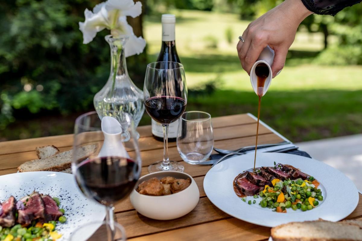 Das kulinarische Angebot ist dem Ambiente angemessen, mit einem Restaurant, das die Aromen des französischen Südwestens mit raffinierter und kreativer Küche feiert. Die Köche bevorzugen die Verwendung von frischen und saisonalen Produkten aus der Region und bieten ein kulinarisches Erlebnis, das in den eleganten Innenräumen oder auf der Terrasse mit Blick auf den Park genossen werden kann.