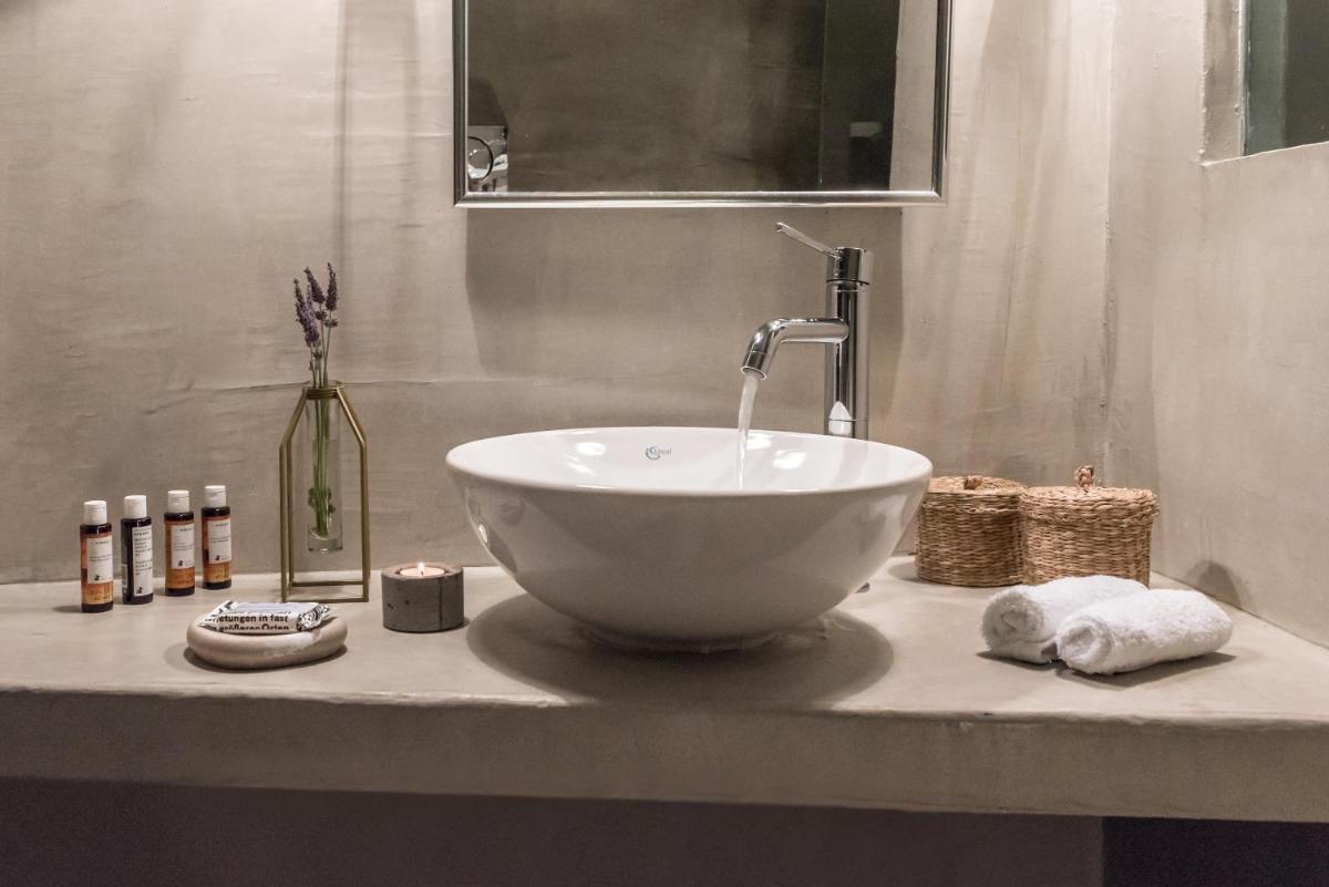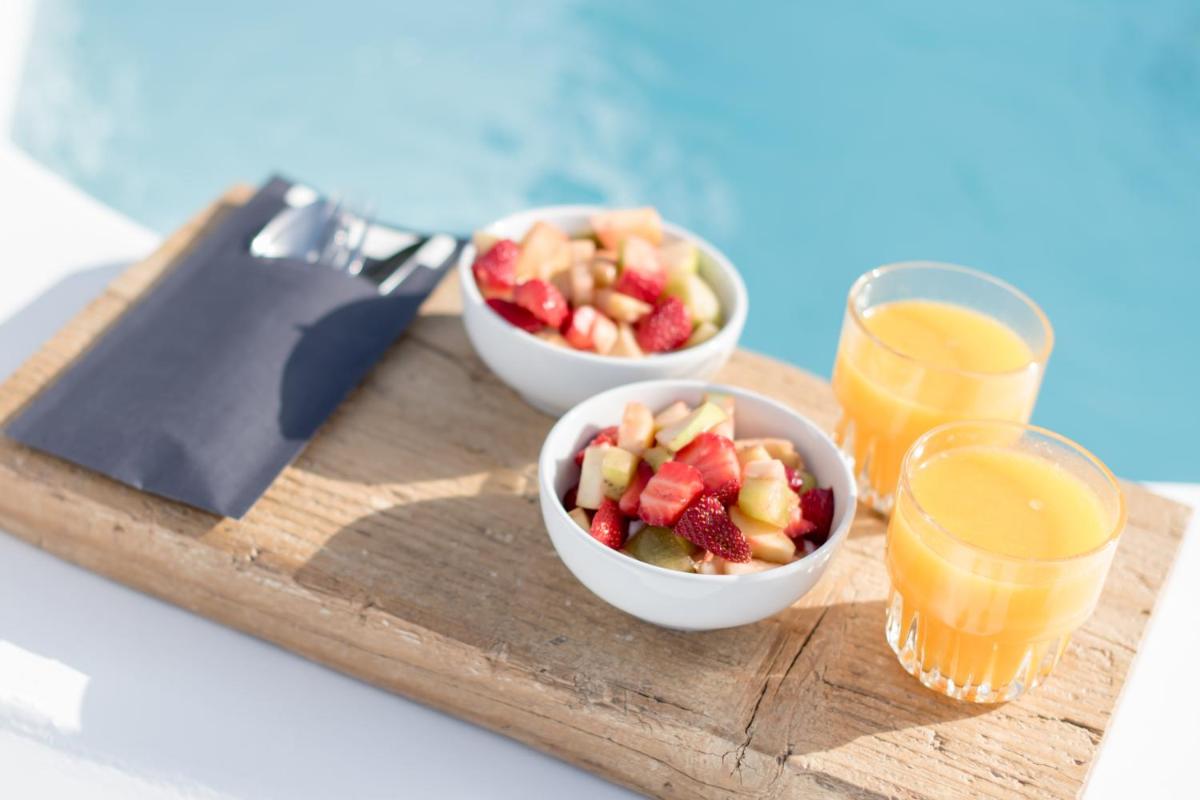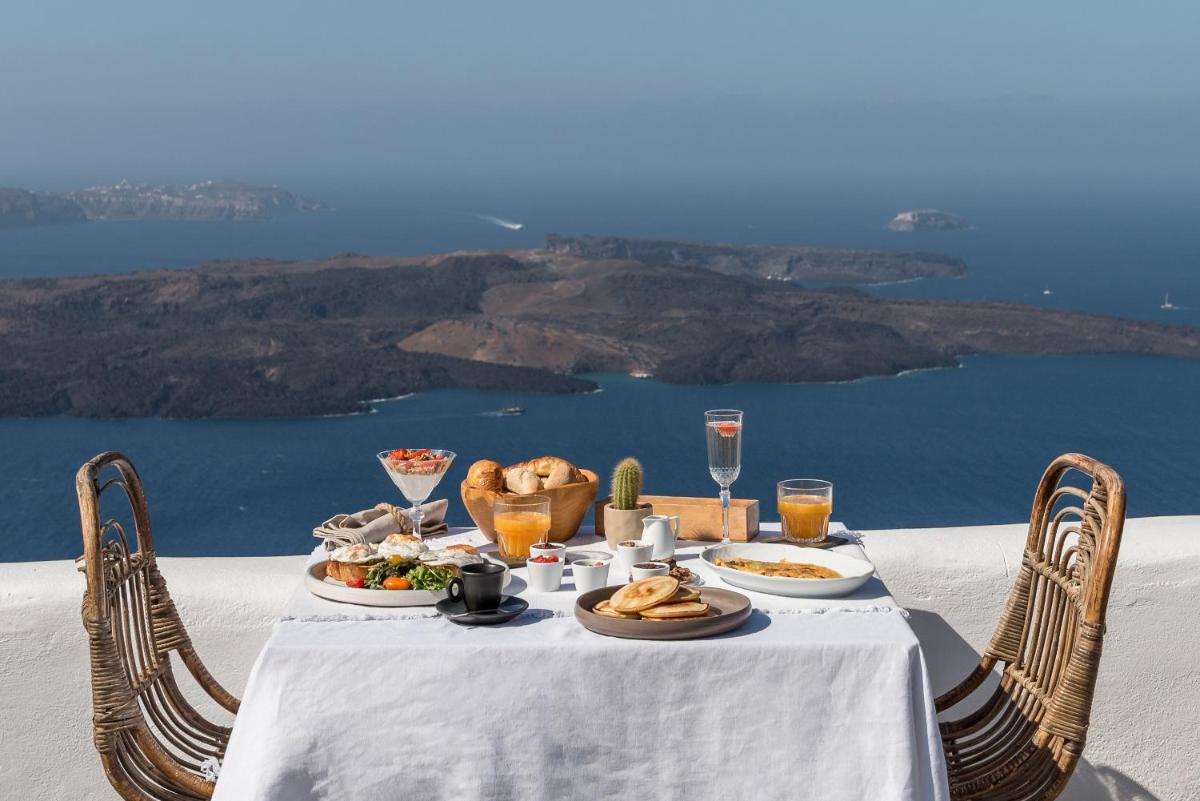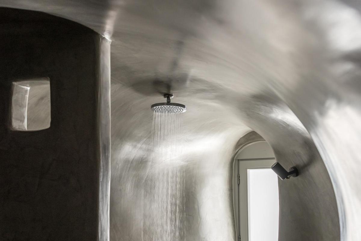 Die Suiten sind wahre Luxusnester, jede einzigartig in ihrem Design, mit der charakteristischen Höhlenstruktur, die die Innenräume kühl hält. Die meisten Unterkünfte verfügen über eine große private Terrasse mit einem Außen-Whirlpool oder einem kleinen Tauchbecken, die direkt auf die majestätische Caldera blicken. Die Einrichtung ist essentiell, aber raffiniert, mit eingebauten Betten und Farbakzenten, die die Reinheit des kykladischen Weiß hervorheben.