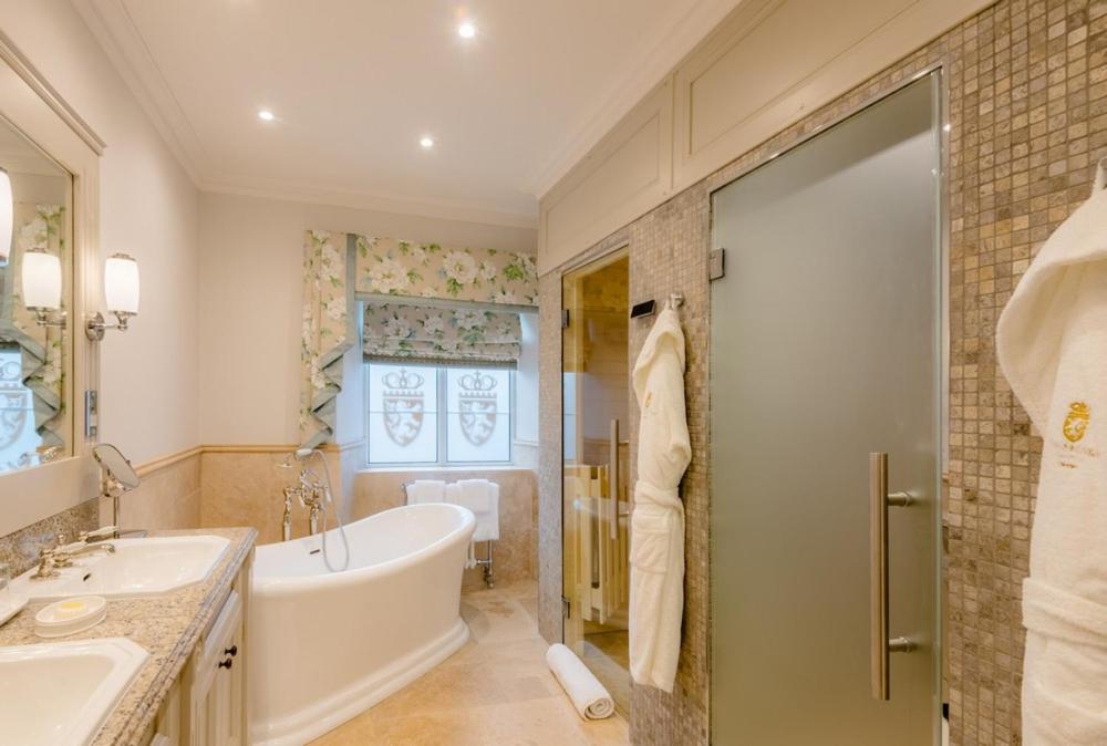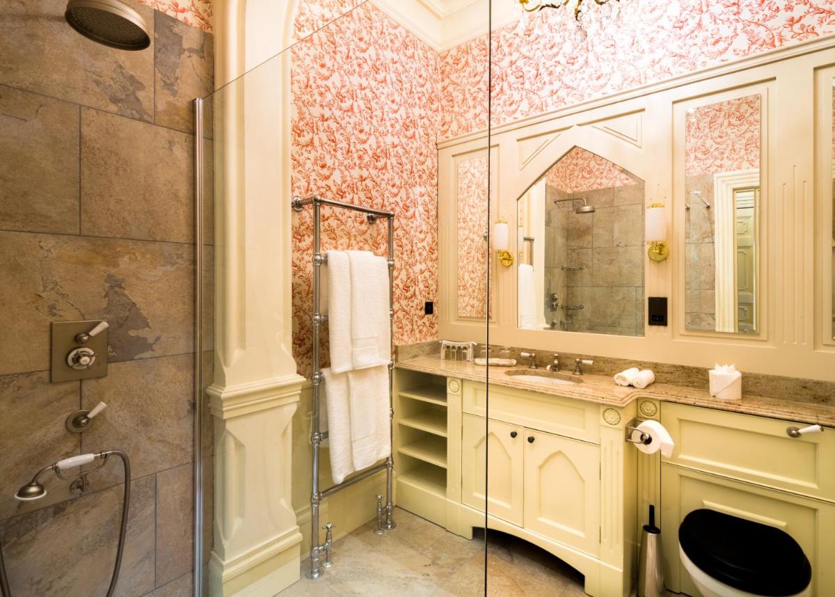 Die Innenräume wurden sorgfältig restauriert, wobei der ursprüngliche Charme des Schlosses erhalten blieb und gleichzeitig moderner Luxus integriert wurde. Die Suiten sind prächtig gestaltet mit reichen, samtigen Stoffen und antiken Möbeln, die ein Gefühl zeitloser Raffinesse hervorrufen.