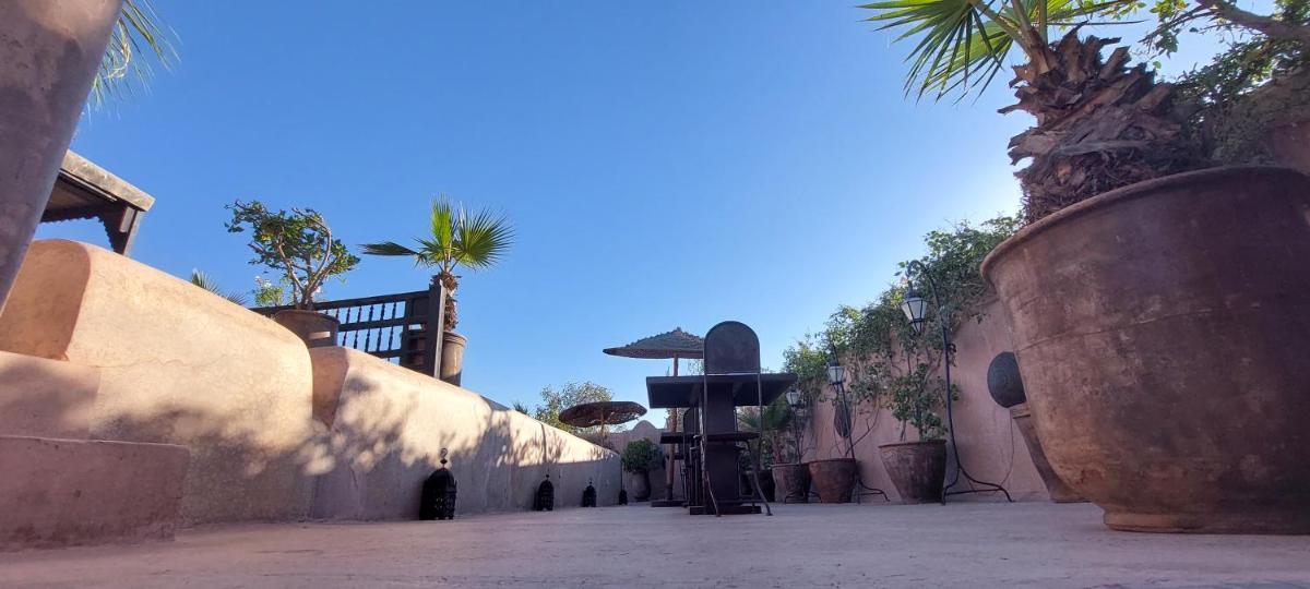 Das wahre Juwel ist die panoramische Dachterrasse, die einen atemberaubenden Blick über die Medina und, in der Ferne, auf das majestätische Atlasgebirge bietet. Hier befindet sich der Swimmingpool, ein schattiger Solariumbereich, perfekt zum Entspannen, Sonnenbaden oder Genießen eines romantischen Abendessens unter den Sternen.