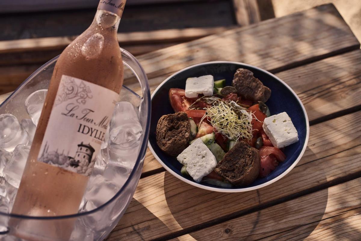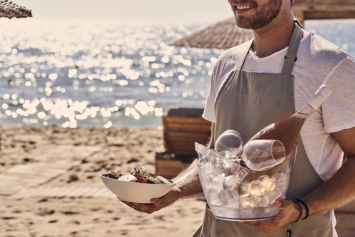 Das Restaurant am Meer des Dionysos bietet ausgezeichnete mediterrane Küche und traditionelle griechische Gerichte mit einem zeitgenössischen Touch. Unter Verwendung frischester lokaler Produkte bietet es die Möglichkeit, Mittag- und Abendessen mit den Füßen fast im Sand zu genießen und die Meeresbrise zu nutzen. Das Frühstück ist ein reichhaltiges Buffet, das jeden Energiebedarf für den Tag am Strand deckt.
