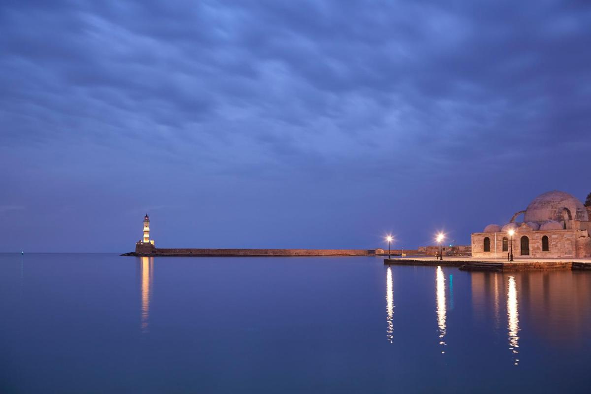 Viele der Zimmer und Gemeinschaftsbereiche genießen einen unvergleichlichen Blick auf den berühmten venezianischen Leuchtturm und das Hafenwasser und bieten eine postkartenreife Kulisse. Dies macht das Hotel zu einem außergewöhnlichen Ausgangspunkt, um in die magische und romantische Atmosphäre der Altstadt von Chania einzutauchen.