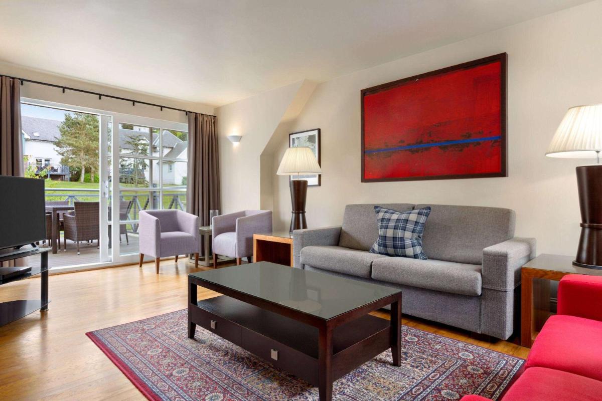 Das Wyndham Duchally Country Estate in Auchterarder ist ein atemberaubendes Anwesen, das eine Kombination aus luxuriösen Hotelzimmern und unabhängigen Selbstversorger-Apartments (Lodges) bietet. Eingebettet in die malerische Landschaft von Perthshire, gewährleistet es einen Aufenthalt, der auf Flexibilität und Luxus-Komfort ausgerichtet ist, in einer strategischen Lage für schottische Attraktionen.