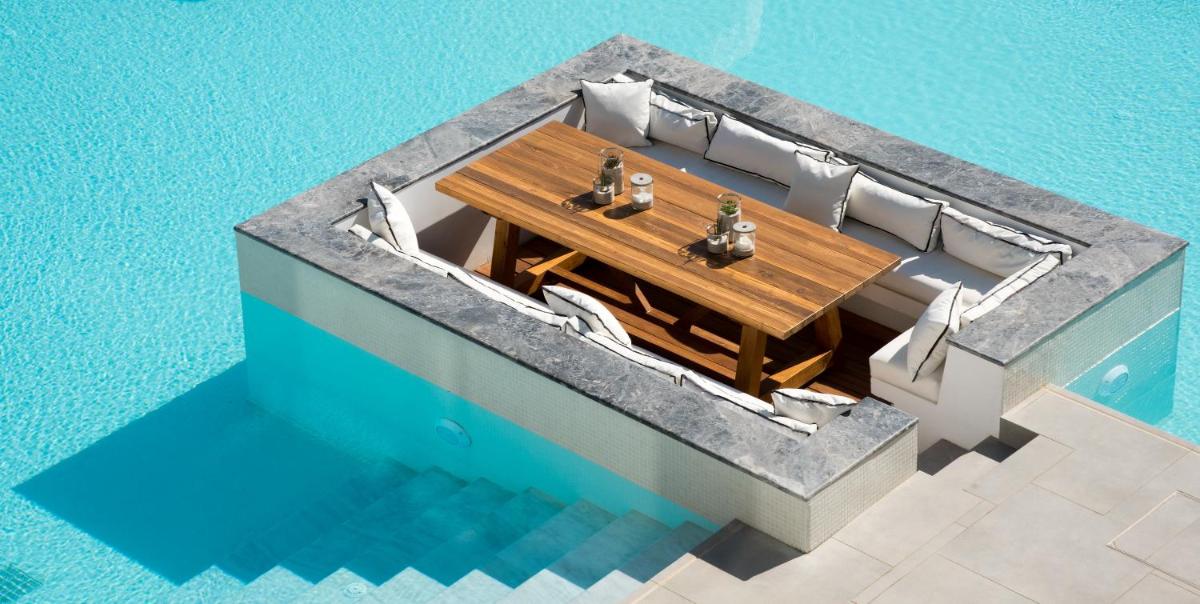 Das gesellschaftliche Herzstück des Resorts ist der exklusive Beach Club. Hier können Gäste auf King-Size-Tagesbetten entspannen, während sie Chill-out-Sets lokaler DJs genießen. Ein echter Geheimtipp ist der Aperitif am Strand: botanische Cocktails mit wilden kretischen Kräutern und hausgemachten Sirupen, während die Sonne langsam im Ägäischen Meer versinkt.