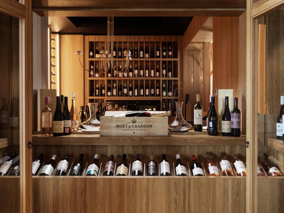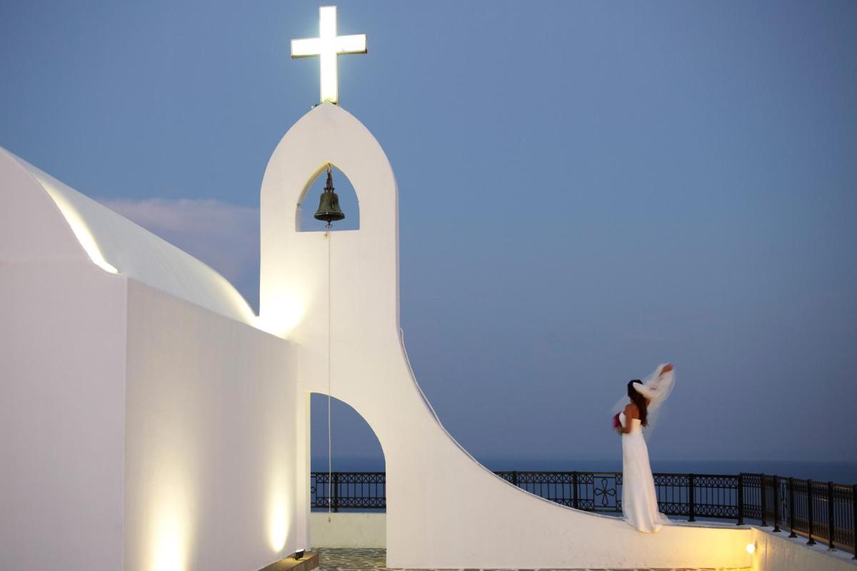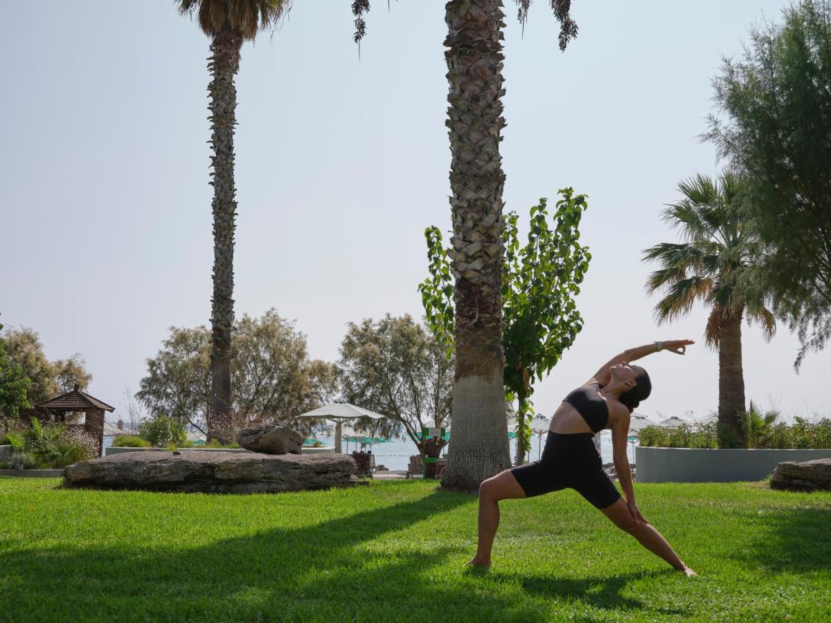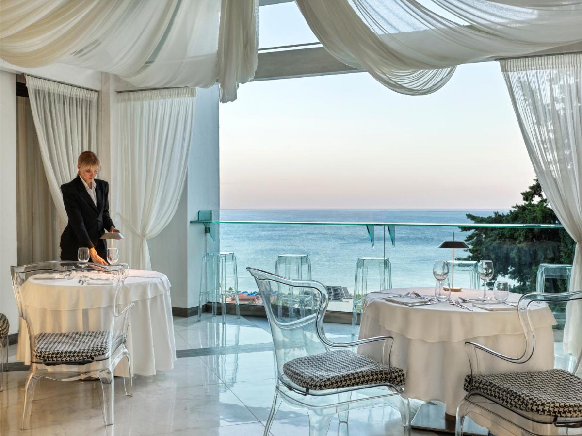 Das Resort bietet verschiedene kulinarische Optionen, die die Aromen der griechischen und mediterranen Küche zelebrieren. Das Hauptrestaurant präsentiert Gerichte, die mit frischen und lokalen Zutaten zubereitet werden, serviert in einer anspruchsvollen Umgebung mit Meerblick. Die Themenabende und Panorama-Bars bieten die perfekte Gelegenheit, exklusive Cocktails zu genießen, während man den Sonnenuntergang bewundert.