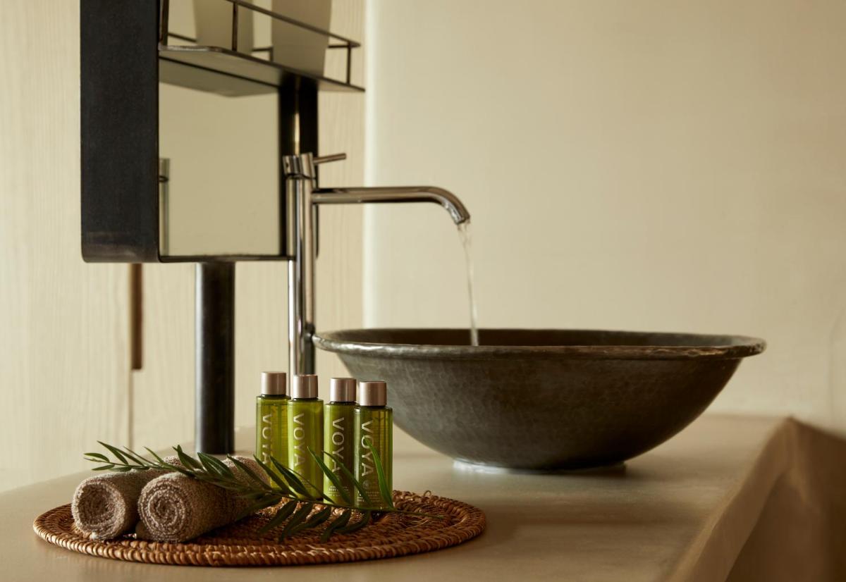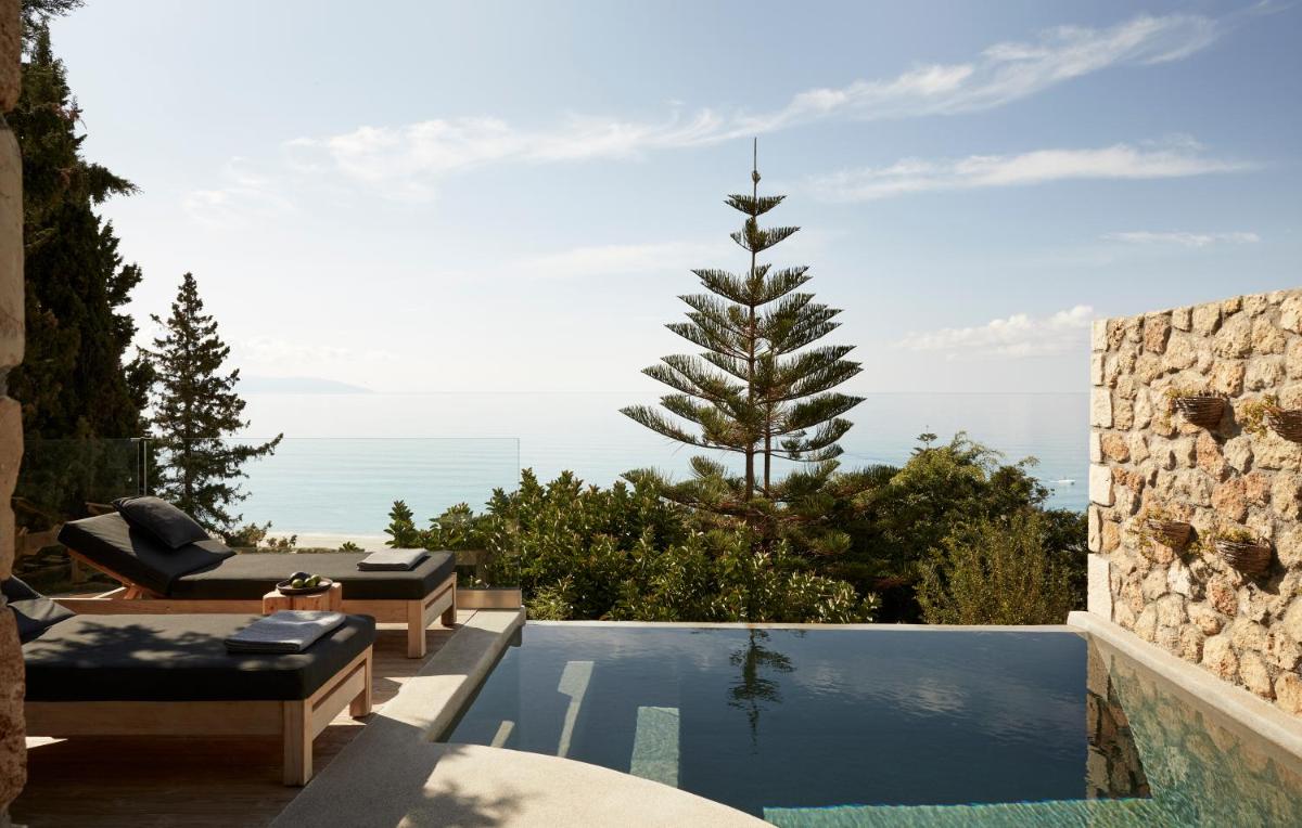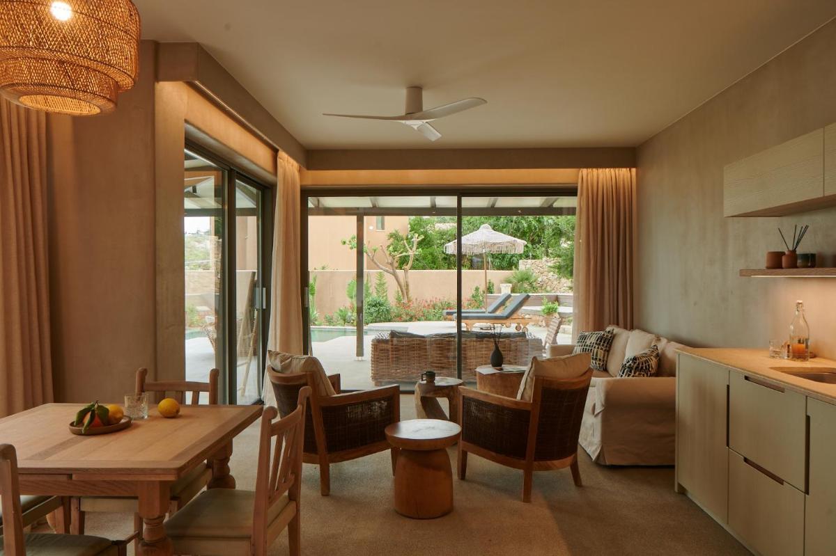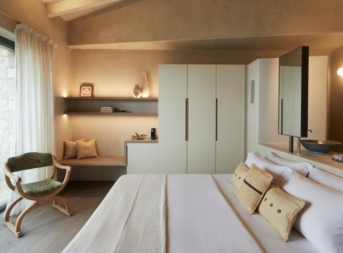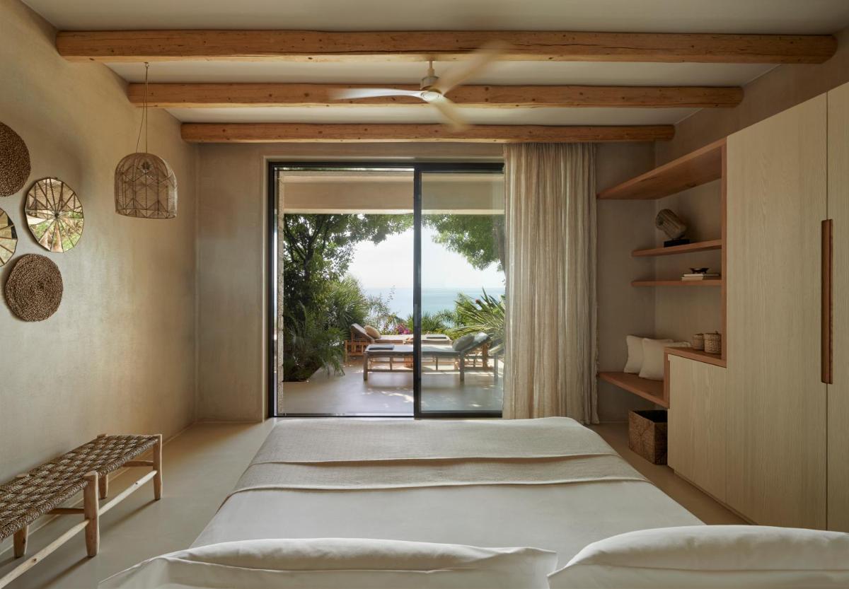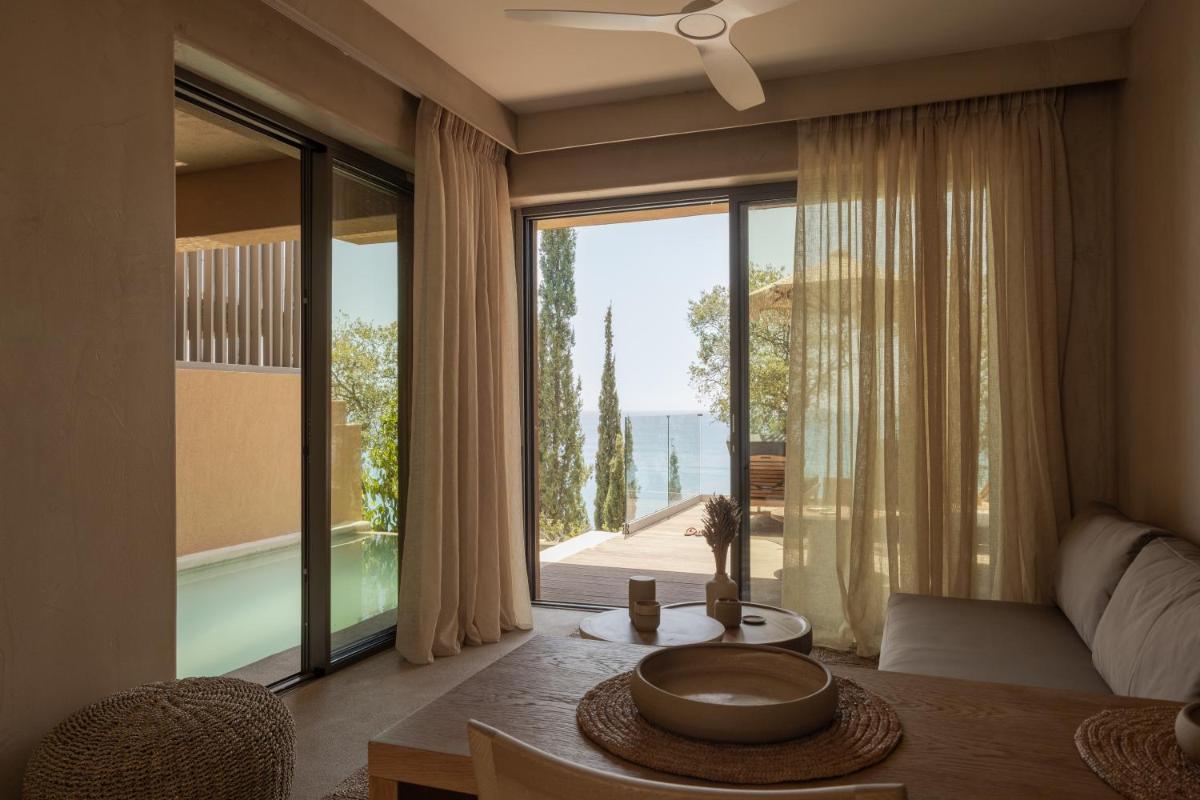 Das Design ist von Land und Meer inspiriert, wobei natürliches Holz und lokaler Stein ausgiebig verwendet werden. Die Zimmer, Suiten und Villen sind als persönliche Heiligtümer konzipiert, mit eleganter und minimalistischer Einrichtung. Viele Einheiten verfügen über private Pools oder Whirlpools mit Meerblick und schaffen so perfekte Außenbereiche für Kontemplation und Entspannung.