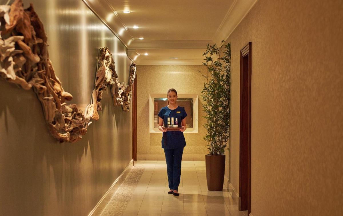 Das Resort beherbergt ein prächtiges Spa mit Innenpool, Whirlpools, Sauna und Behandlungsräumen. Es ist ein Zufluchtsort des Friedens, der Luxustherapien und eine ruhige Umgebung für vollständige Verjüngung bietet, perfekt nach einem Tag auf den Plätzen oder in der Stadt.