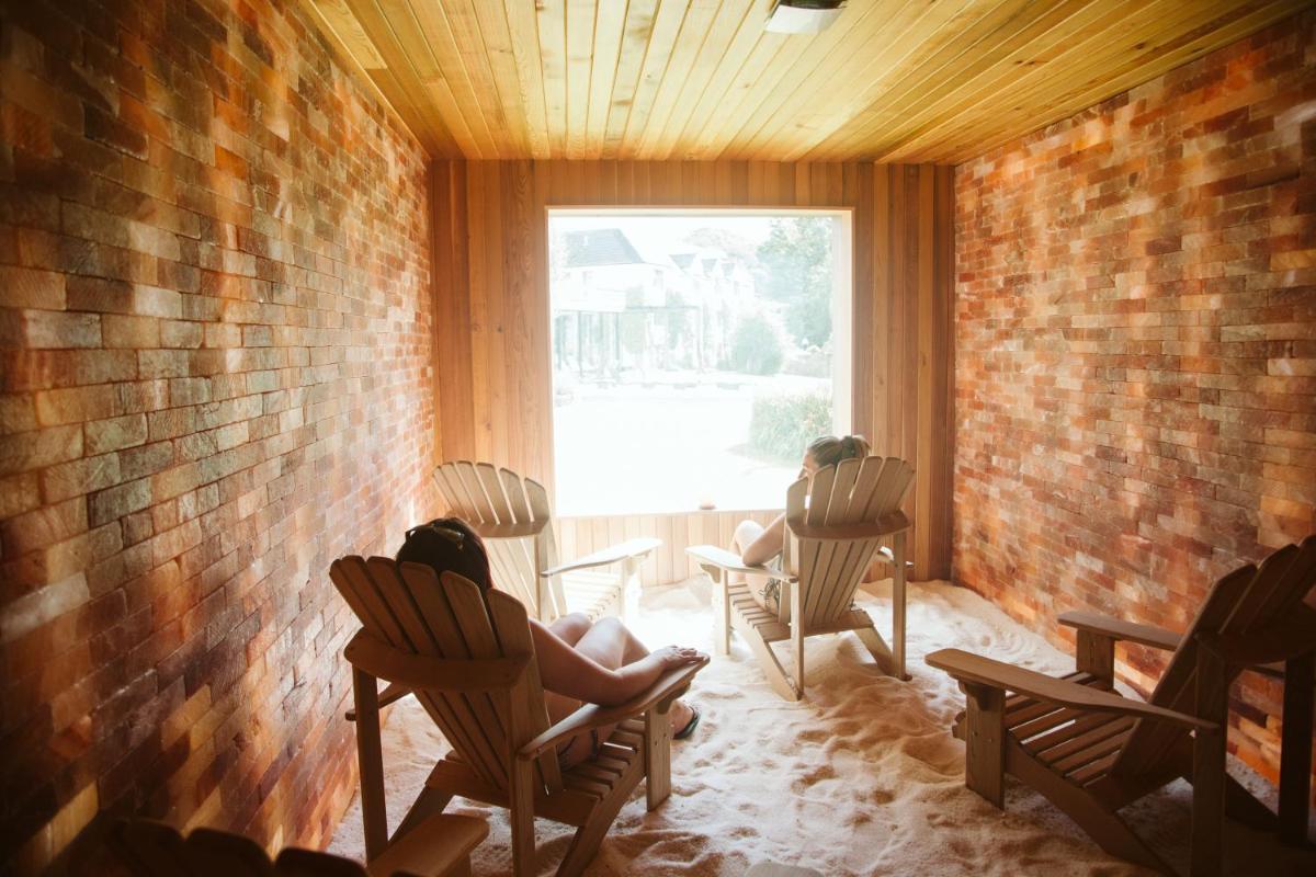 Die Unterkünfte reichen von eleganten Zimmern und Suiten bis hin zu luxuriösen Cottages und Lofts, alle geschmackvoll und detailverliebt eingerichtet. Viele Zimmer bieten einen Panoramablick auf den Fluss oder die umliegende Parklandschaft. Das Design ist klassisch, aber frisch und gewährleistet ein Refugium des Komforts und der Raffinesse nach einem Tag Spa-Behandlungen.