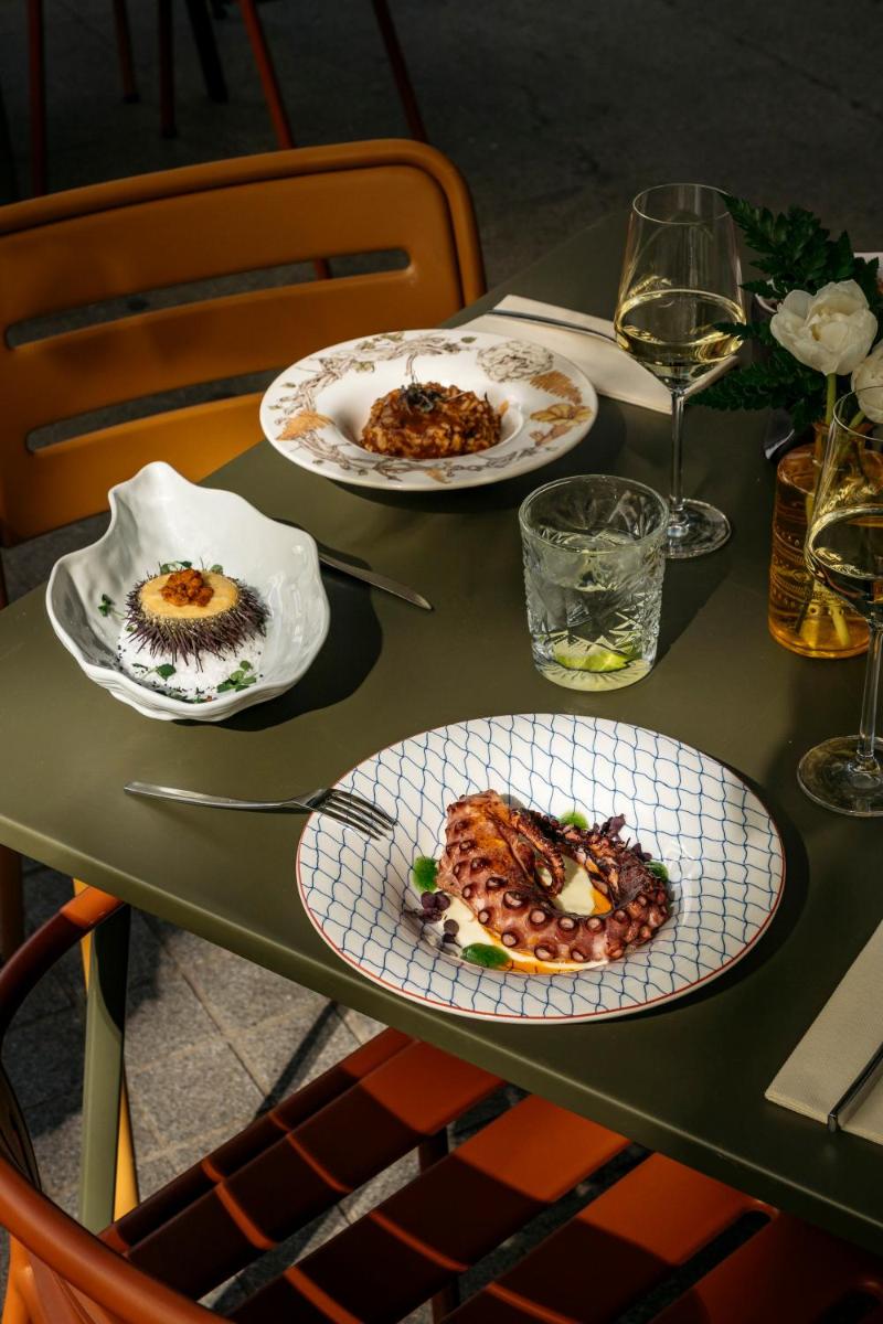 Trotz seiner historischen Architektur bietet das Hotel hochmoderne Einrichtungen. Auf dem Dach können die Gäste einen Außenpool und einen Solariumbereich mit Panoramablick auf die Stadt genießen, was einen luxuriösen Rückzugsort und Entspannung über dem Trubel des Zentrums bietet.