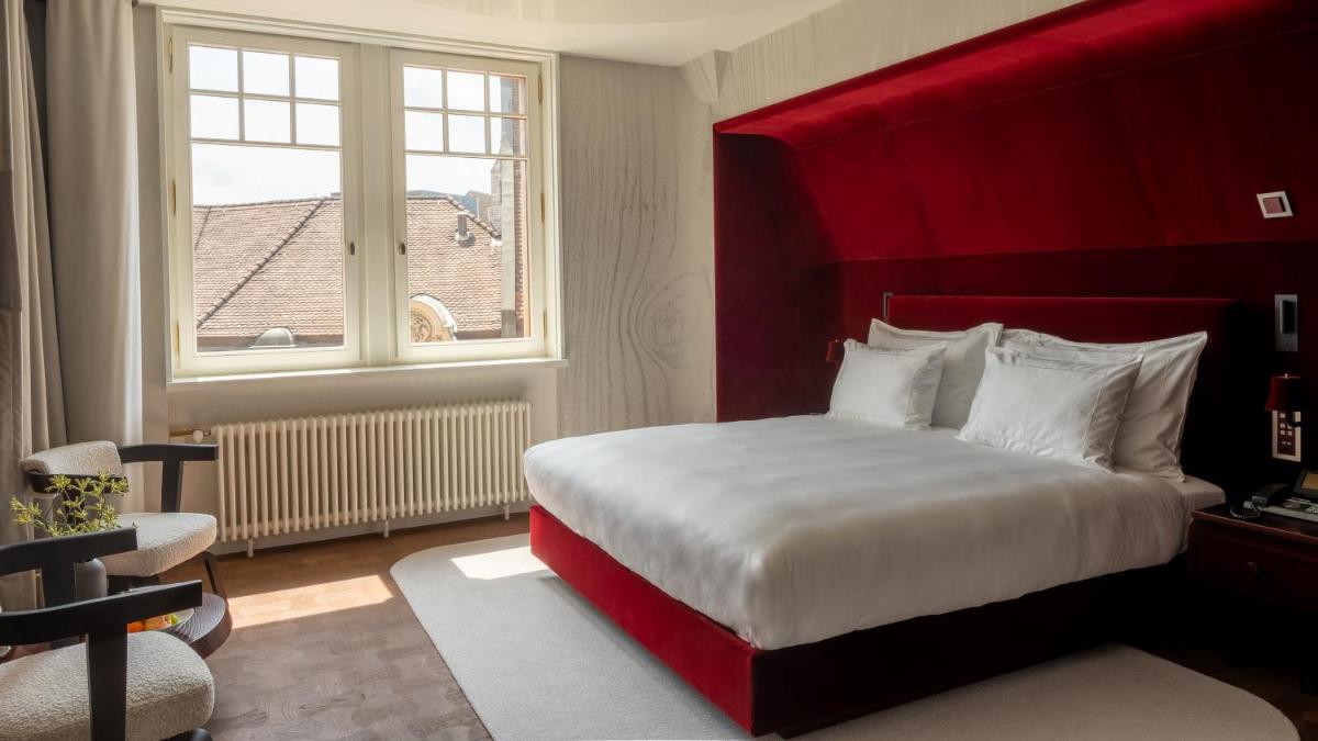 Das Innendesign ist ein Triumph der neoklassizistischen und barocken Eleganz, mit akribischer Liebe zu historischen Details. Die Zimmer und Suiten sind mit antiken Möbeln, Kunstwerken und luxuriösen Stoffen ausgestattet und bieten modernen Komfort mit einer Atmosphäre königlicher Raffinesse. Viele blicken direkt auf den Rhein und bieten spektakuläre Ausblicke.