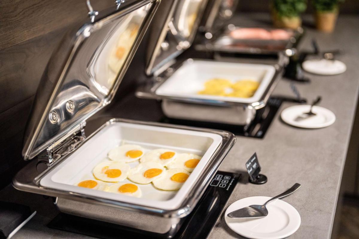 Morgens erwartet Sie im Hotel ein tägliches Frühstücksbuffet, das im Zimmerpreis inbegriffen ist. Das Hotelrestaurant GrandSoLie serviert den ganzen Tag über ein komplettes Menü.