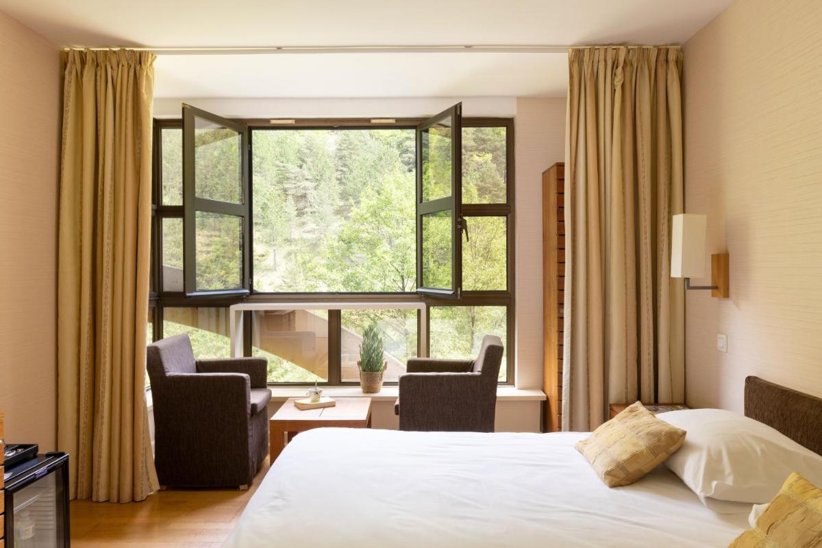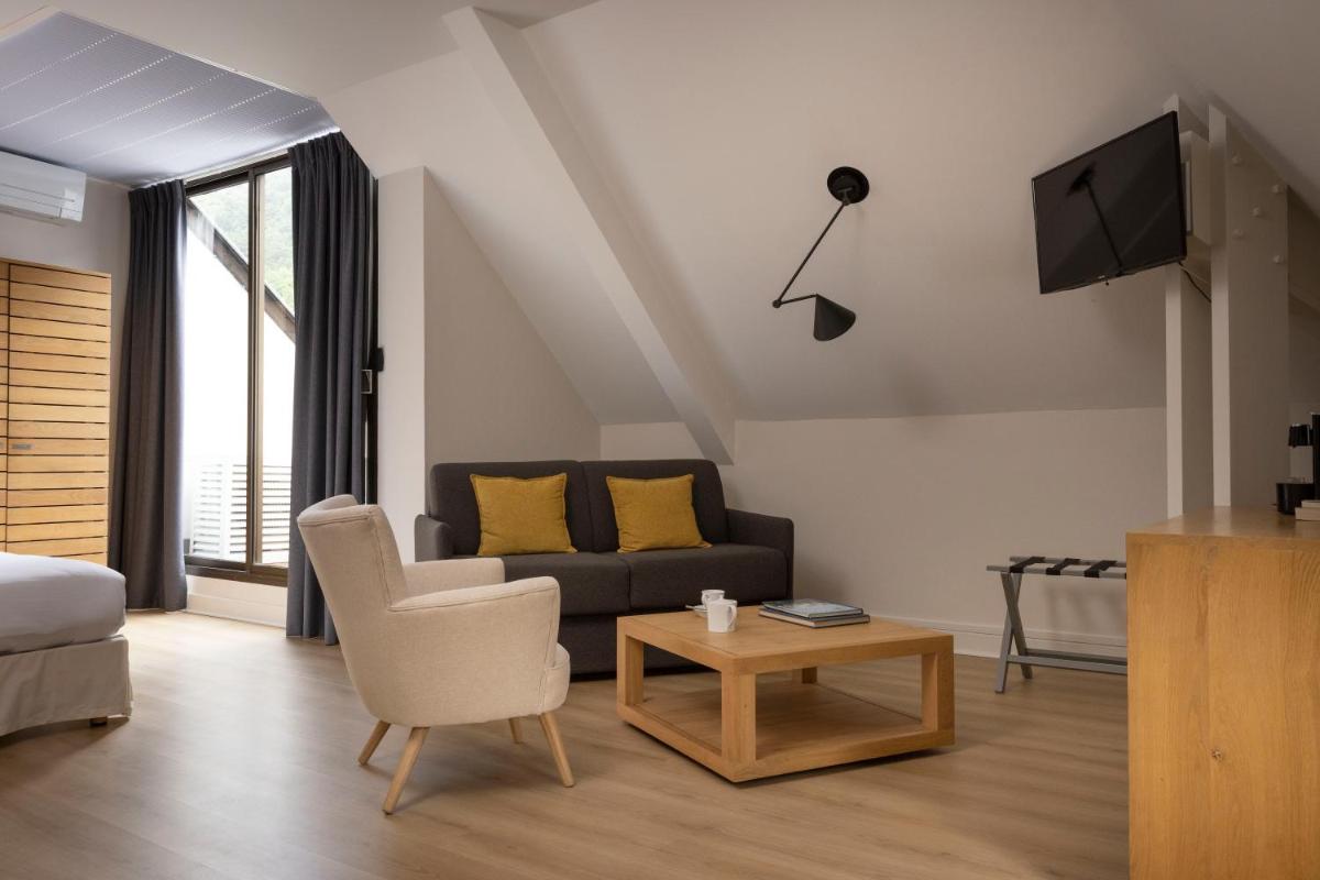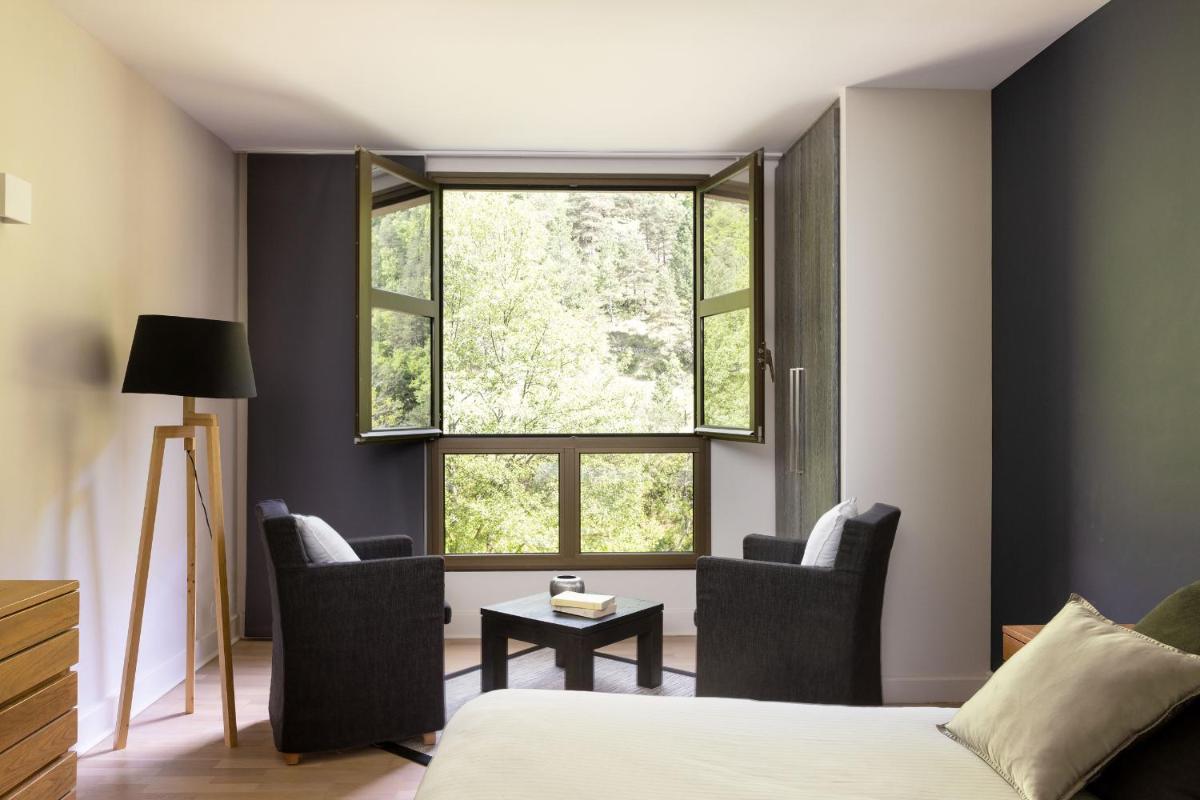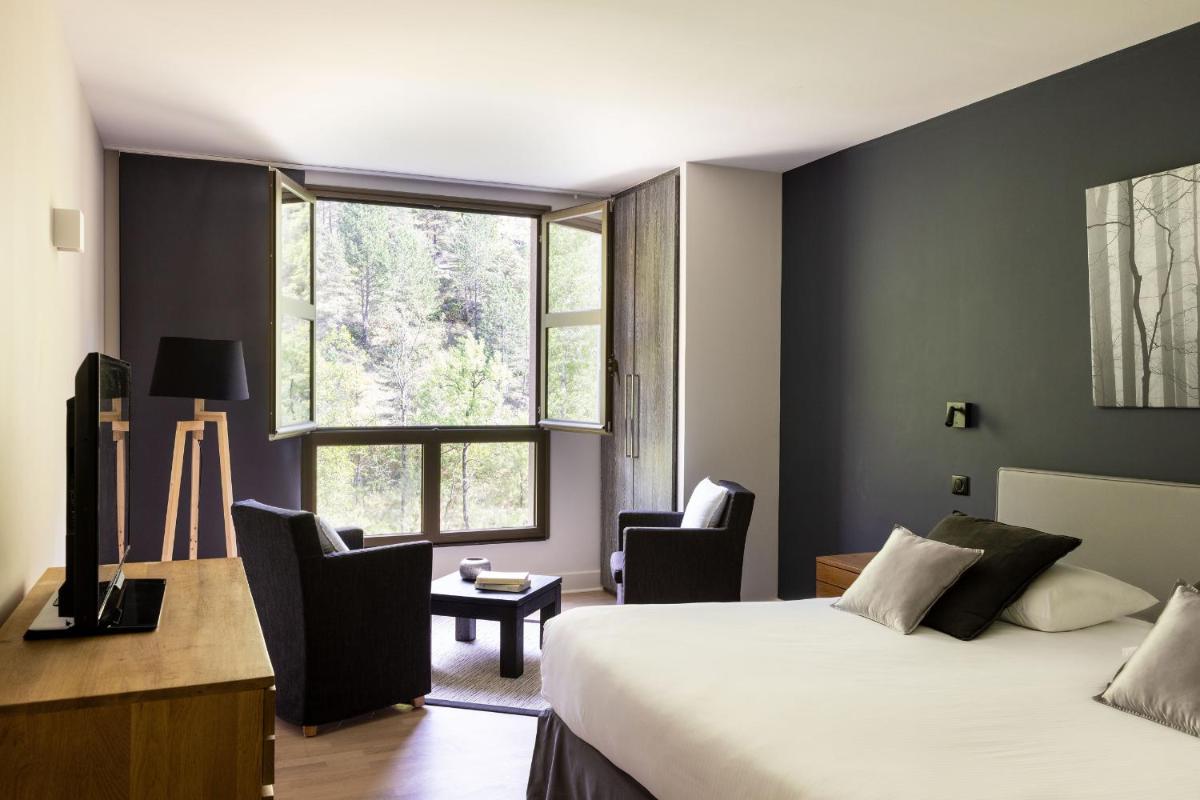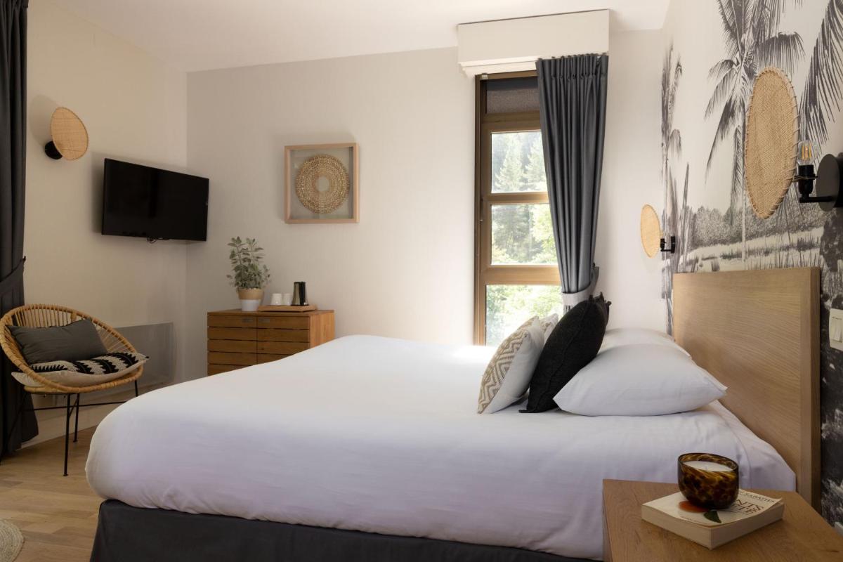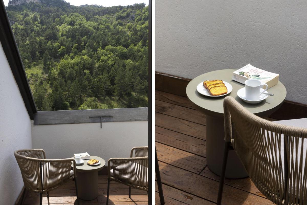 Die Zimmer sind in einem Stil eingerichtet, der die Authentizität und Wärme der Region widerspiegelt, mit Holz und natürlichen Farben. Viele von ihnen verfügen über einen privaten Balkon mit Blick auf den Tarn, was ein Erwachen und eine Ruhe in völliger Gelassenheit garantiert.