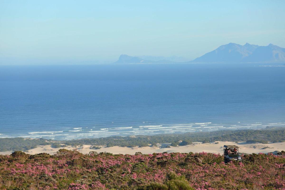 Die Unterkünfte sind in zwei Haupt-Lodges unterteilt, Forest Lodge und Garden Lodge, jede mit eleganten, unabhängigen Suiten. Das Design ist von der Natur inspiriert, mit extensivem Einsatz von Holz und Stein, und jede Suite verfügt über einen Kamin und eine private Terrasse, von der aus man das Panorama der Walker Bay und des Ozeans bewundern kann.