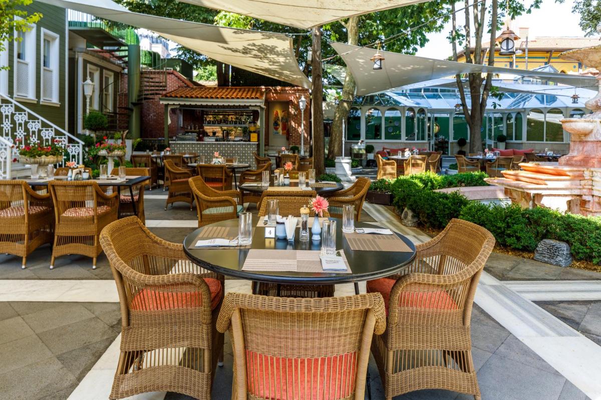 Das Hotel verfügt über wunderschöne Innenhöfe und Gärten, die als Oasen der Ruhe im Herzen der belebtesten Stadt dienen. Das gastronomische Angebot umfasst Restaurants, die die beste traditionelle türkische Küche und internationale Gerichte servieren, oft in einem romantischen und historischen Ambiente. Ein Höhepunkt ist die Möglichkeit, Tee oder Abendessen in einer Atmosphäre zu genießen, die in der Zeit eingefroren scheint, umgeben von historischen Mauern.