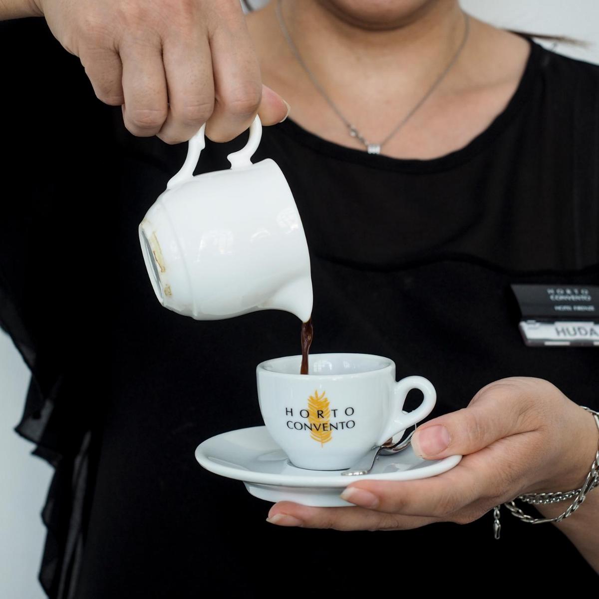Die wahre Stärke der Unterkunft ist das "Horto", der große Ummauerte Garten, der das Hotel umgibt, eine Oase der Ruhe abseits des touristischen Chaos, in der sich die Gäste entspannen können. Hier wird das Frühstücksbuffet (kontinental, süß und herzhaft, mit veganen/glutenfreien Optionen) serviert, oder die Gäste können abends in der eleganten Lounge Bar vor Ort einen Drink genießen.