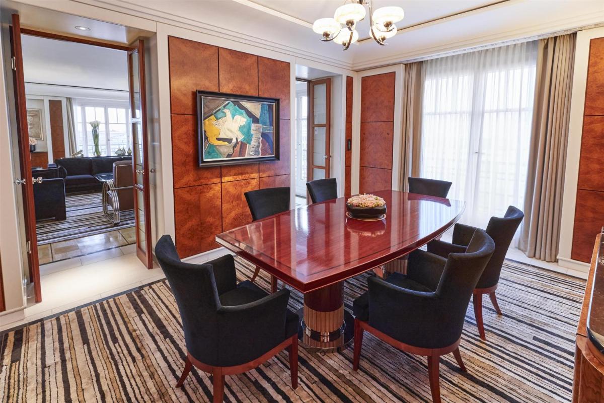 Die 385 Zimmer und Suiten verfügen über ein aufwendiges Design, das den Empire-Stil mit modernem Komfort verbindet. Edle Materialien, Holzmöbel und Marmorbäder schaffen eine Atmosphäre von Opulenz und Raffinesse. Viele Zimmer bieten einen direkten und unvergleichlichen Blick auf das Brandenburger Tor, ein exklusives Detail in Berlin.