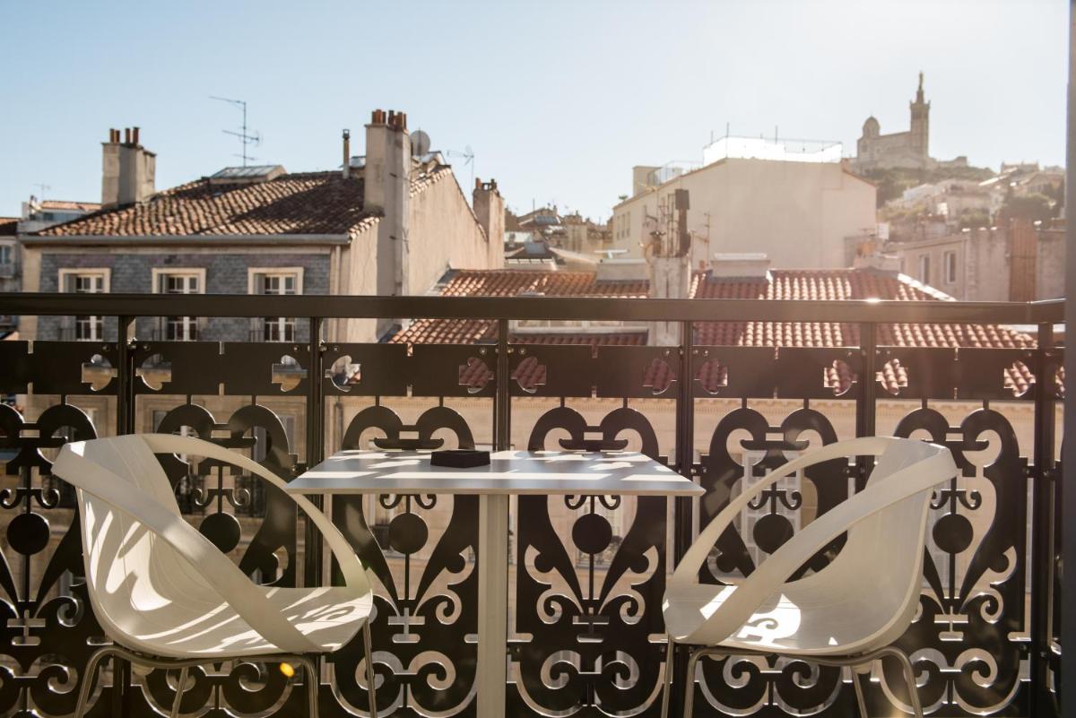 Dieses exklusive Doppelzimmer befindet sich auf der 4. Etage und verfügt über eine Terrasse mit Blick auf Notre-Dame de la Garde. Das eigene Bad ist zum Schlafzimmer hin halb offen und verfügt über eine Dusche, ein Dampfbad und einen Flachbild-TV mit Blick auf das Bad.