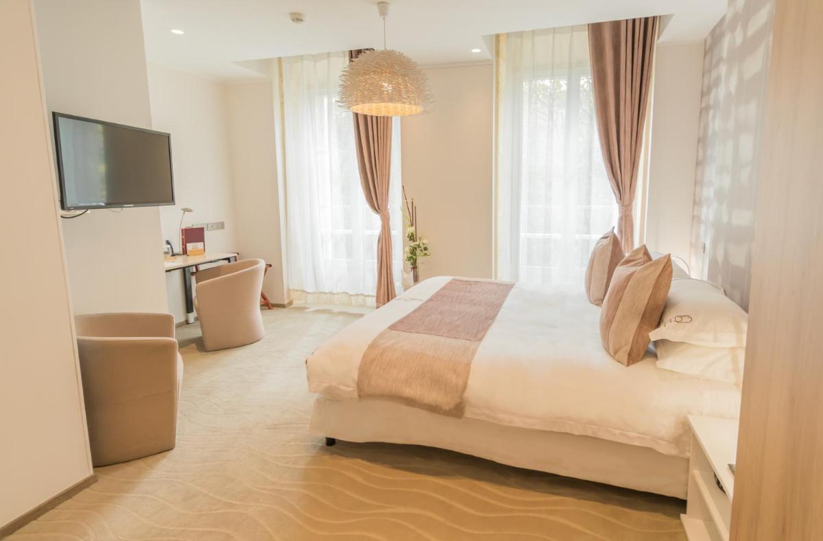 Das Hotel verfügt über nur 18 Zimmer, was einen hochgradig personalisierten Service und eine intime Atmosphäre gewährleistet. Die Zimmer sind geräumig, hell und geschmackvoll eingerichtet, mit einer harmonischen Mischung aus historischen Zierleisten, Marmorkaminen und modernen Möbeln. Luxuriöse Stoffe und ausgewählte Kunstwerke unterstreichen das Gefühl von Exklusivität und Komfort.