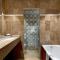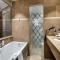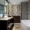 Das eigene Bad ist mit einem Doppelwaschbecken, einer Dusche und einer Badewanne ausgestattet. Ein separates WC ist ebenfalls vorhanden.