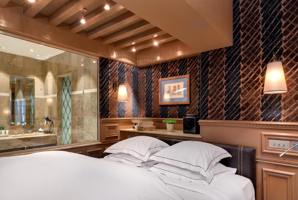 Die Zimmer und Suiten sind in einem Stil eingerichtet, der klassische Eleganz mit einem zeitgenössischen Touch verbindet. Der wahre Luxus ist die gebotene Aussicht: Viele Zimmer blicken direkt auf die Cité und bieten ein einzigartiges Nachtspektakel, wenn die Festung beleuchtet ist.